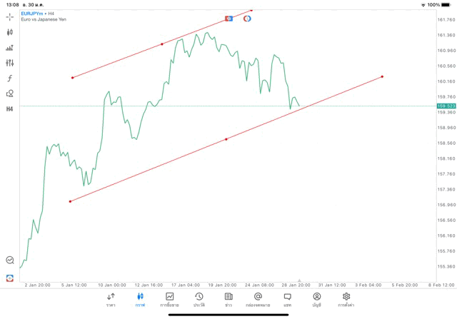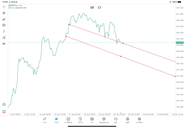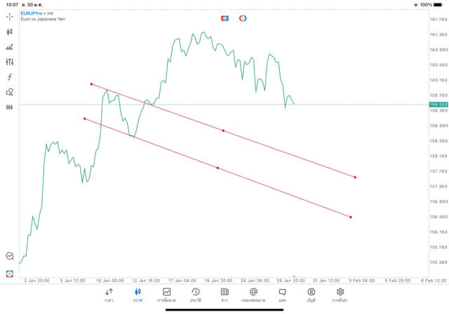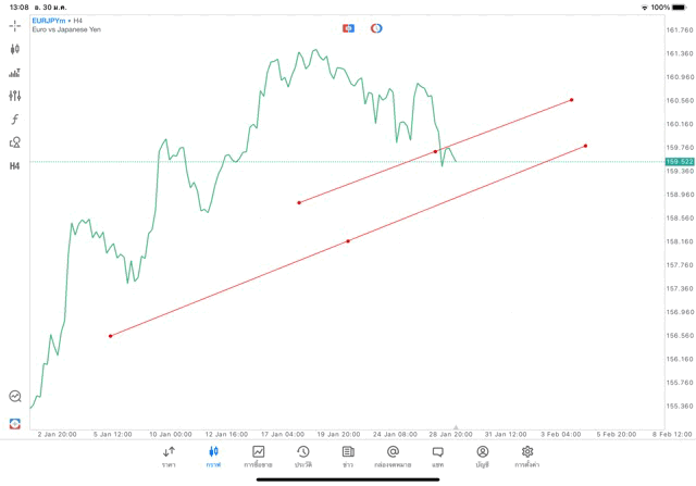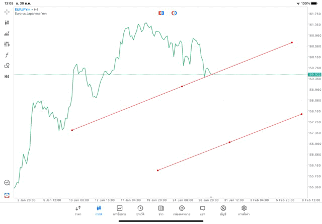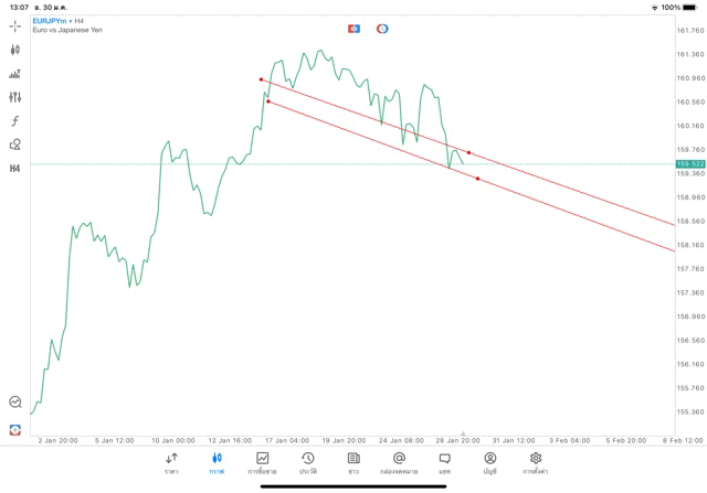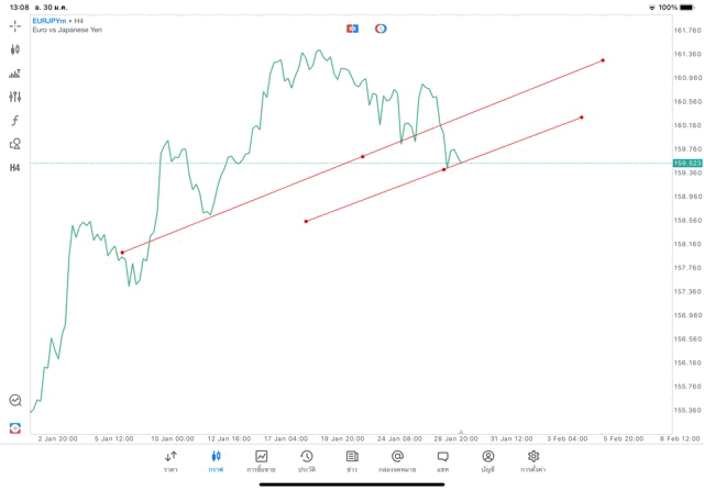 การวาด Trendline H4 Forex EURJPY application Meta trader 5 หรือ mt5 โบรกเกอร์ Forex exness