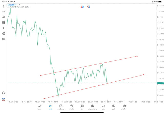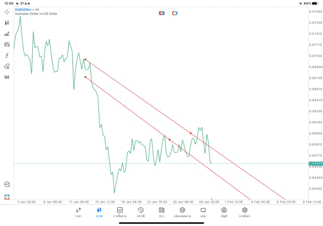 การวาด Trendline H4 Forex AUDUSD application Meta trader 5 หรือ mt5 โบรกเกอร์ Forex exness