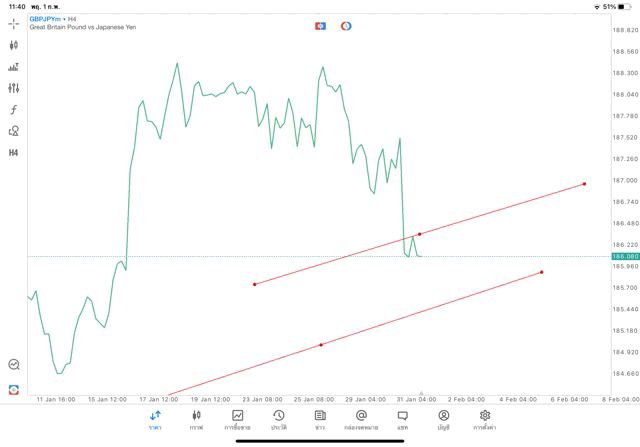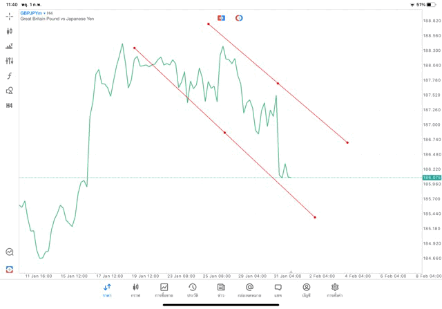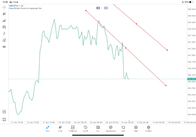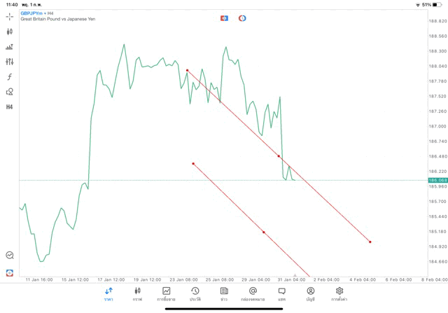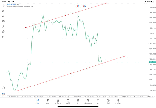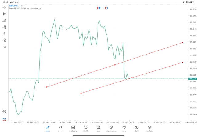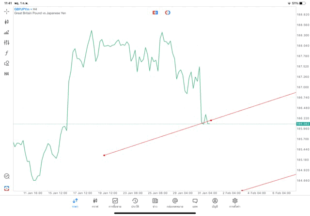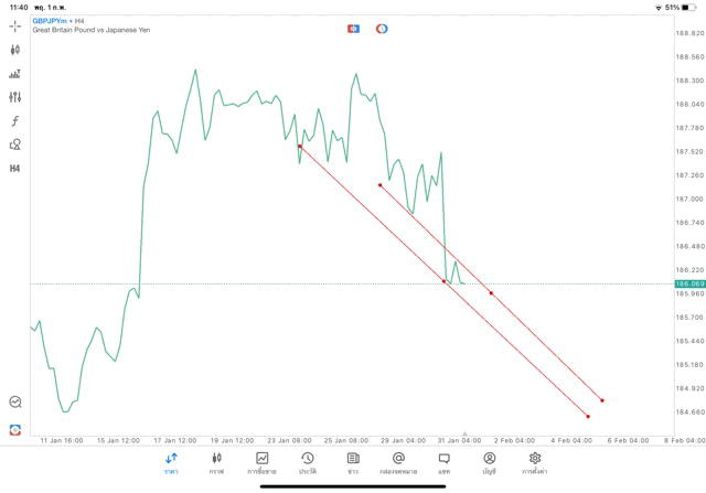 การวาด Trendline H4 Forex GBPJPY application Meta trader 5 หรือ mt5 โบรกเกอร์ forex exness