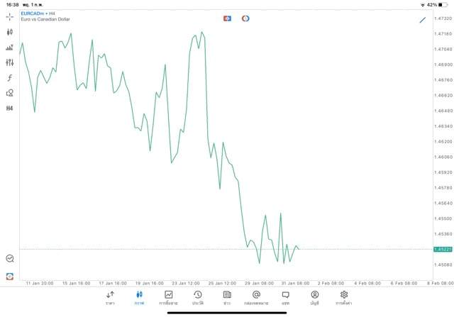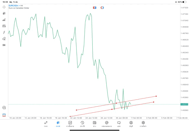 การวาด Trendline H4 Forex EURCAD application Meta trader 5 หรือ mt5 โบรกเกอร์ forex exness