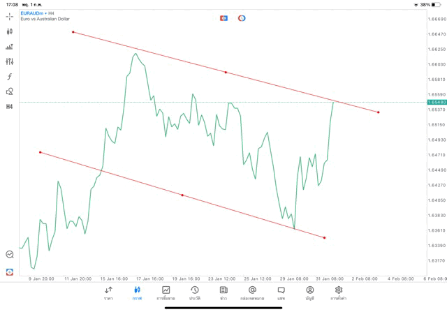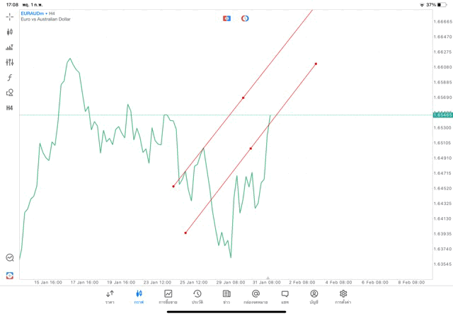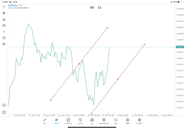 การวาด Trendline H4 Forex EURAUD application Meta trader 5 หรือ mt5 โบรกเกอร์ forex exness