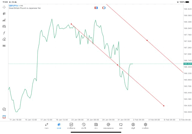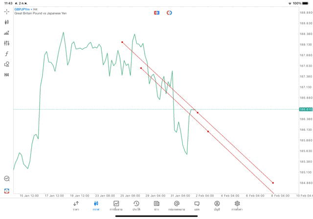 การวาด Trendline H4 Forex GBPJPY application Meta trader 5 หรือ mt5 โบรกเกอร์ forex exness