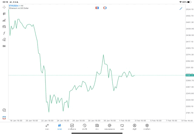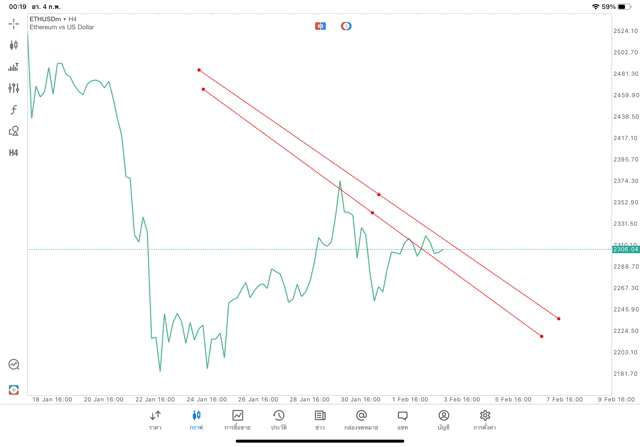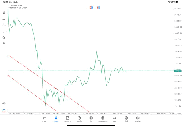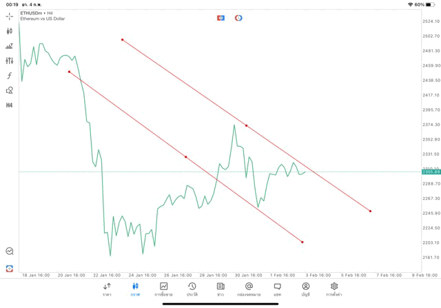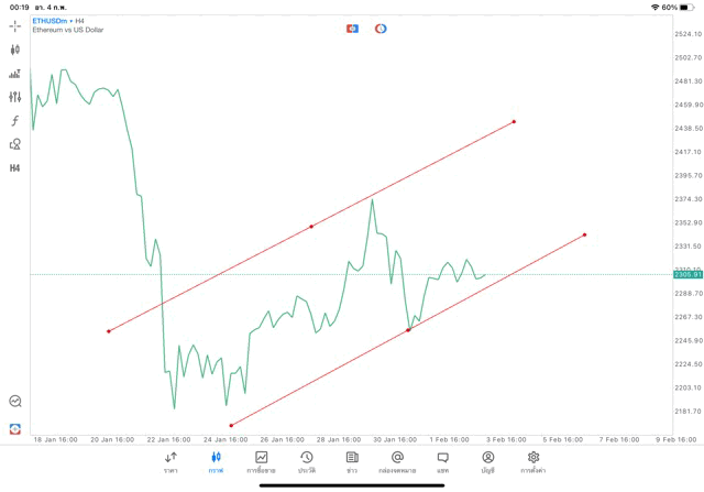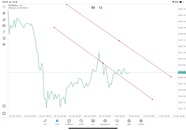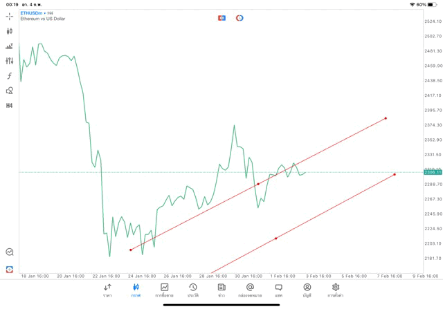 การวาด Trendline H4 Crypto ETHUSD application Meta trader 5 หรือ mt5 โบรกเกอร์ forex exness