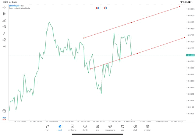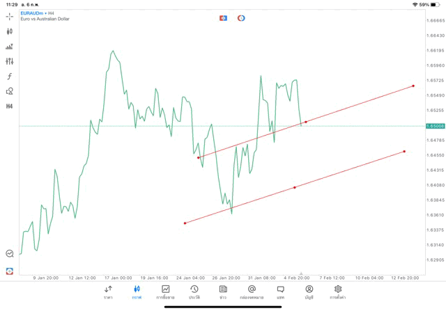 การวาด Trendline H4 Forex EURAUD application Meta trader 5 หรือ mt5 โบรกเกอร์ forex exness