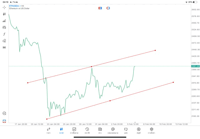 การวาด Trendline H4 Crypto ETHUSD application Meta trader 5 หรือ mt5 โบรกเกอร์ forex exness