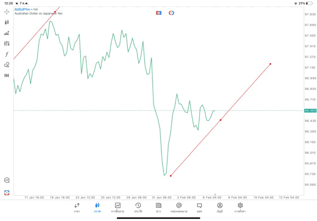 การวาด Trendline H4 Forex AUDJPY application Meta trader 5 หรือ mt5 โบรกเกอร์ Forex exness