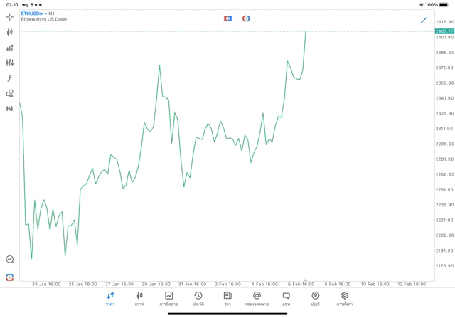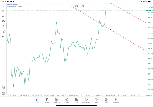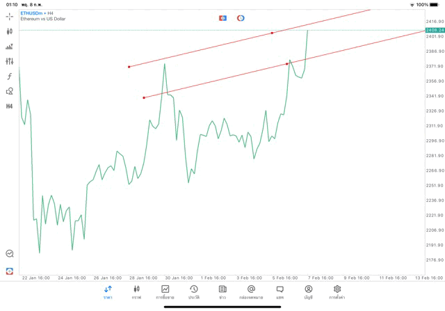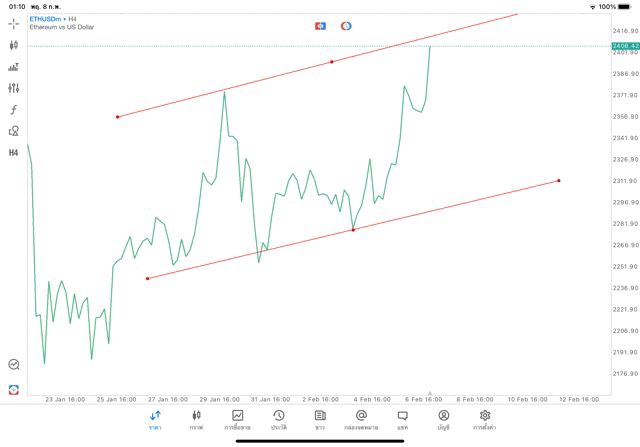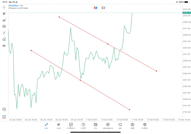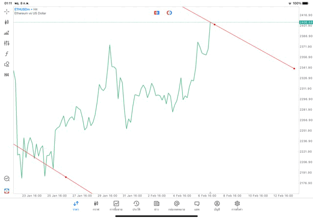 การวาด Trendline H4 Crypto ETHUSD application Meta trader 5 หรือ mt5 โบรกเกอร์ forex exness
