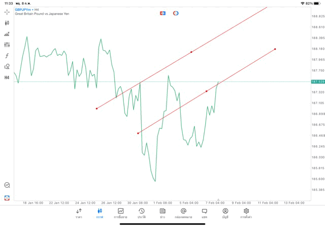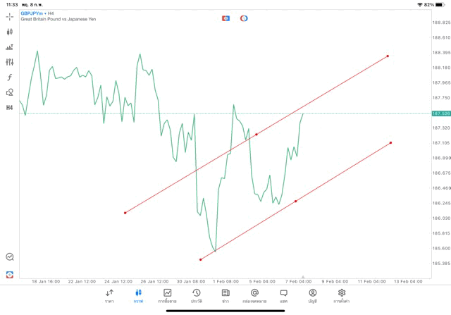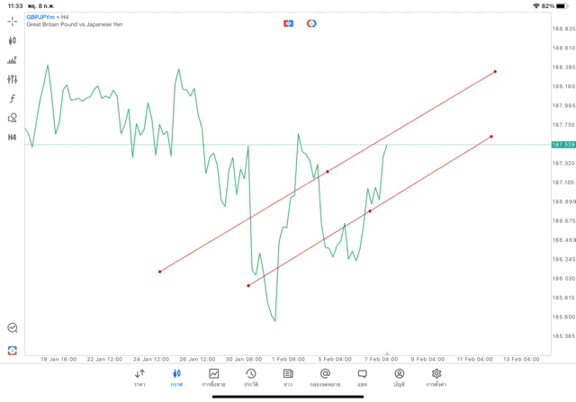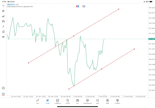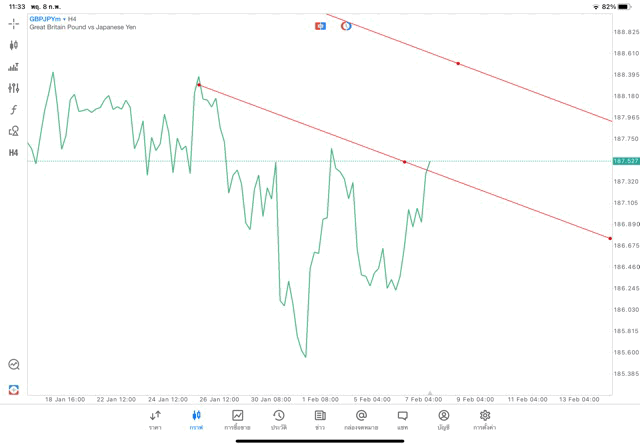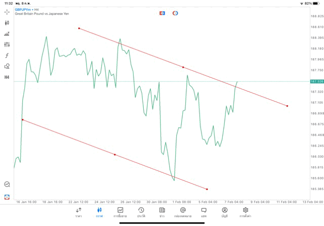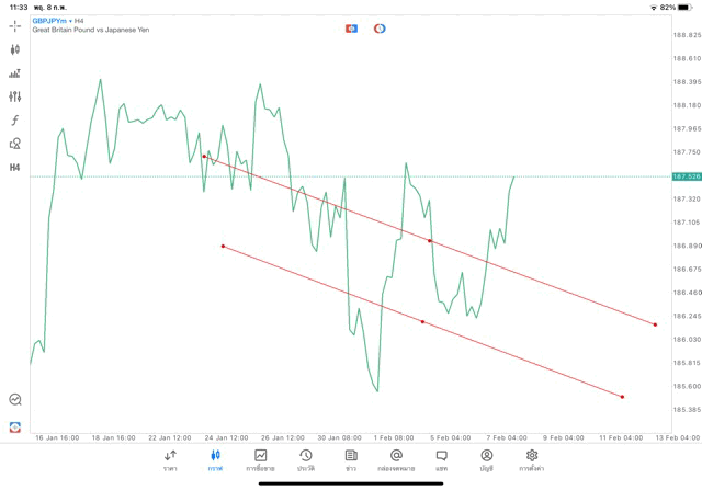 การวาด Trendline H4 Forex GBPJPY application Meta trader 5 หรือ mt5 โบรกเกอร์ forex exness