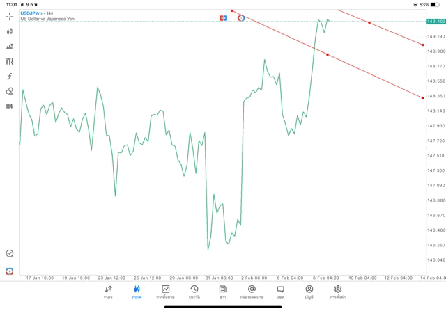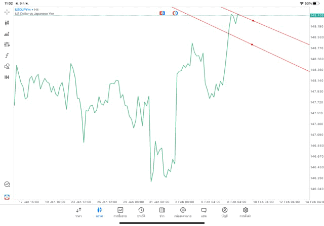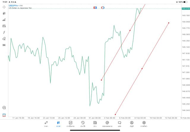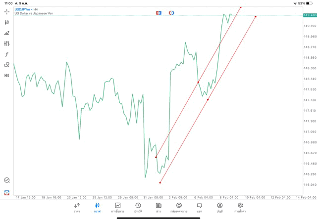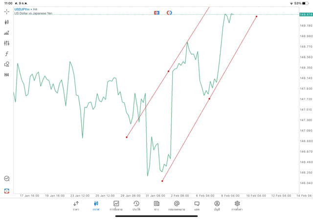 การวาด Trendline H4 Forex USDJPY application Meta trader 5 หรือ mt5 โบรกเกอร์ Forex exness