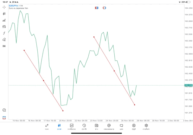 การวาด Tradeline H4 Forex EURJPY application Meta trader 5 หรือ mt5 โบรกเกอร์ forex exness