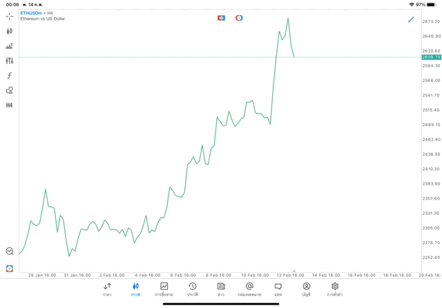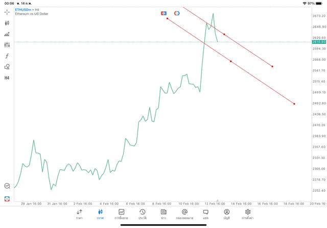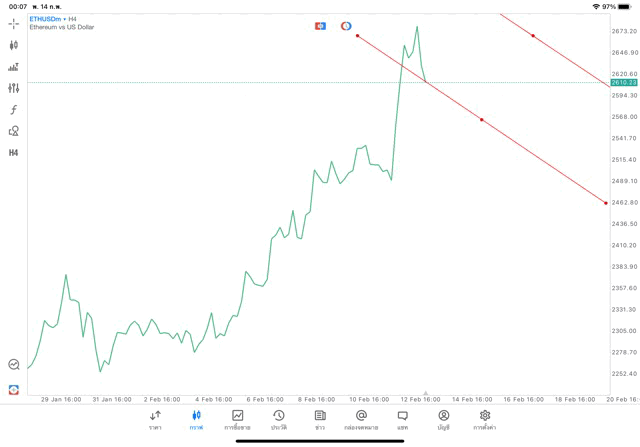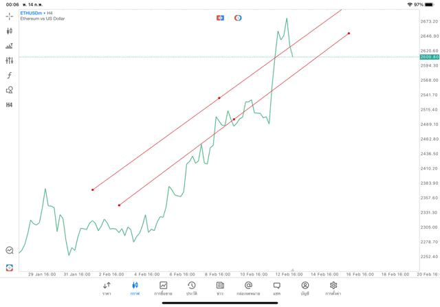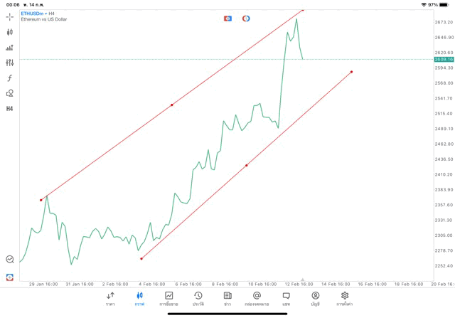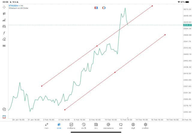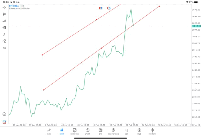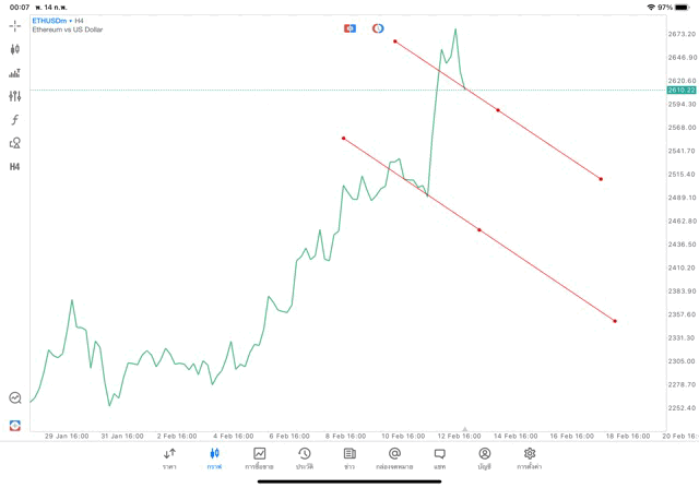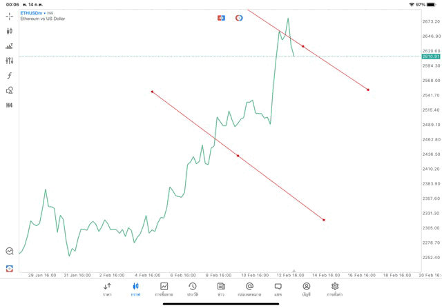 การวาด Trendline H4 Crypto ETHUSD application Meta trader 5 หรือ mt5 โบรกเกอร์ forex exness