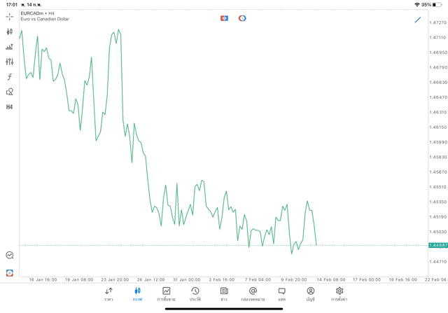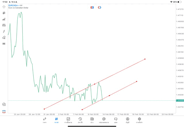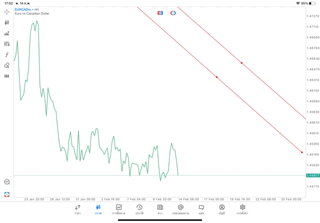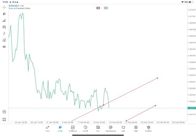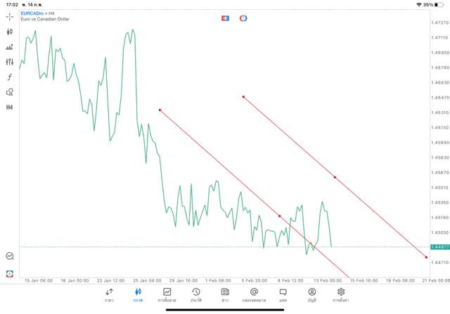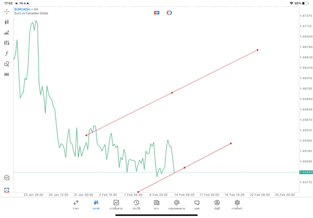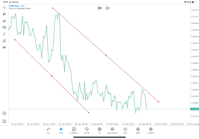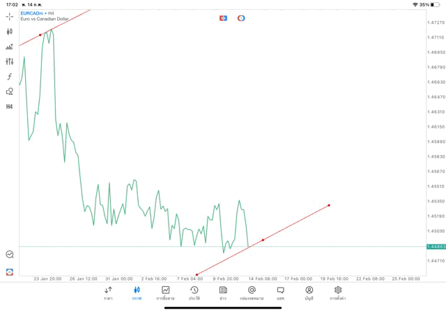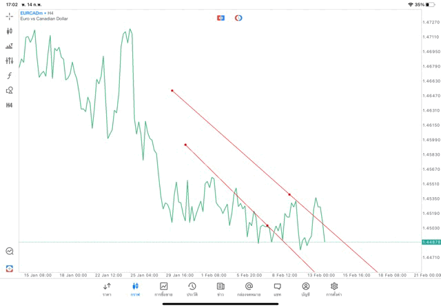 การวาด Trendline H4 Forex EURCAD application Meta trader 5 หรือ mt5 โบรกเกอร์ forex exness