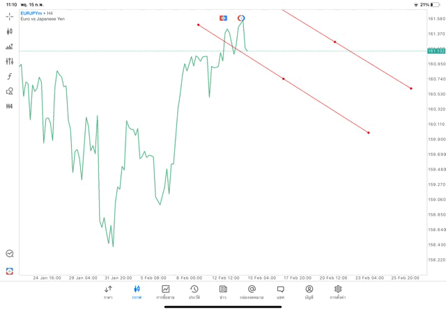 การวาด Trendline H4 Forex EURJPY application Meta trader 5 หรือ mt5 โบรกเกอร์ Forex exness