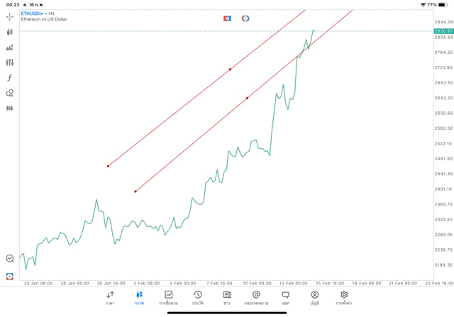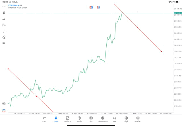 การวาด Trendline H4 Crypto ETHUSD application Meta trader 5 หรือ mt5 โบรกเกอร์ forex exness