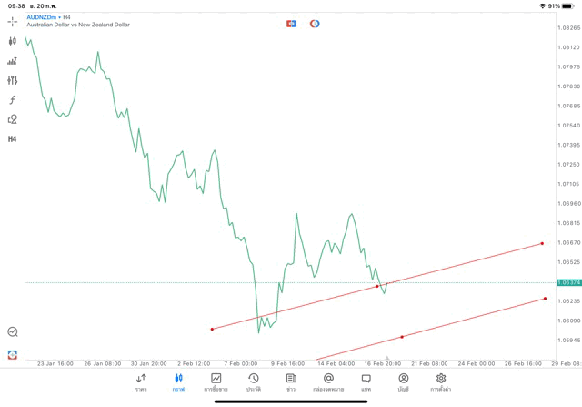 การวาด Trendline H4 Forex AUDNZD application Meta trader 5 หรือ mt5 โบรกเกอร์ Forex exness