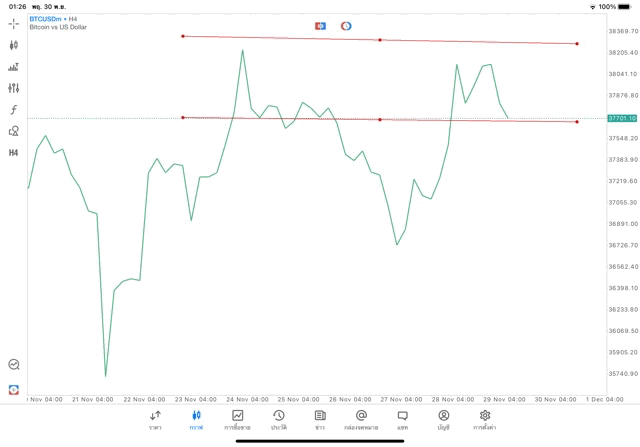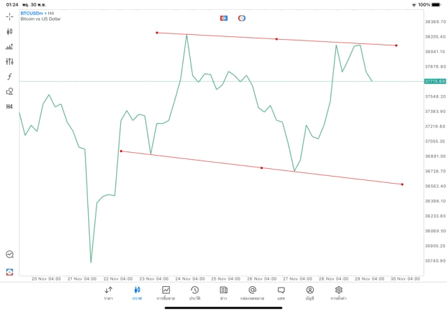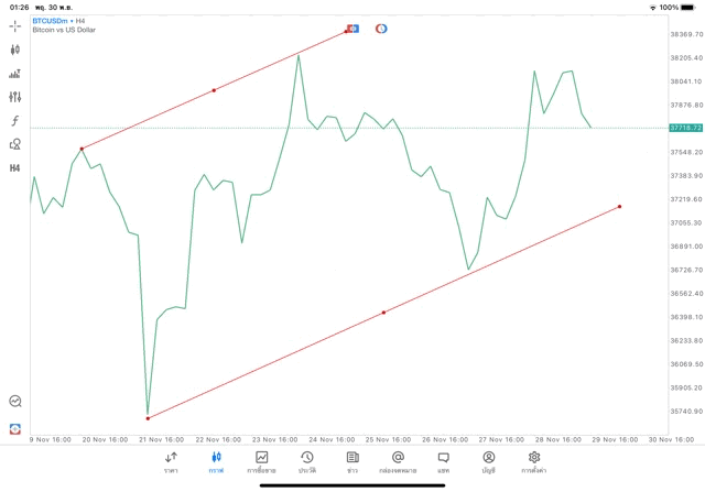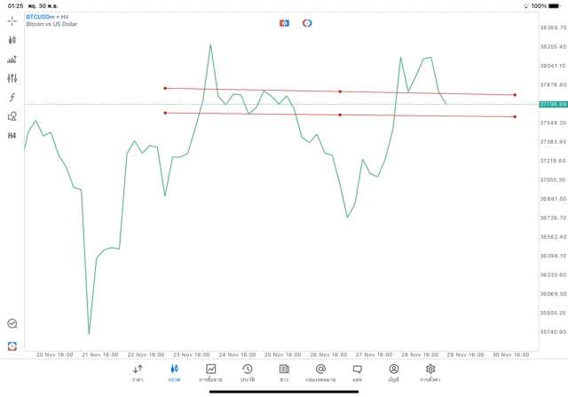 การวาด Tradeline H4 Crypto BTCUSD application Meta trader 5 หรือ mt5 โบรกเกอร์ forex exness