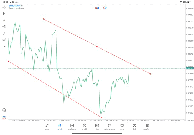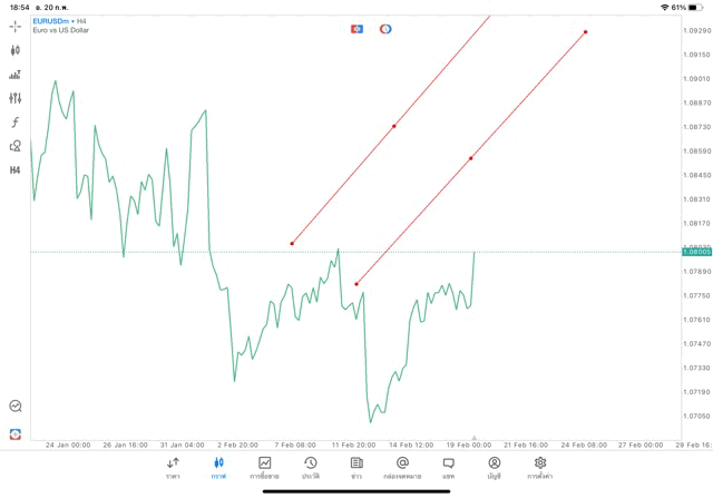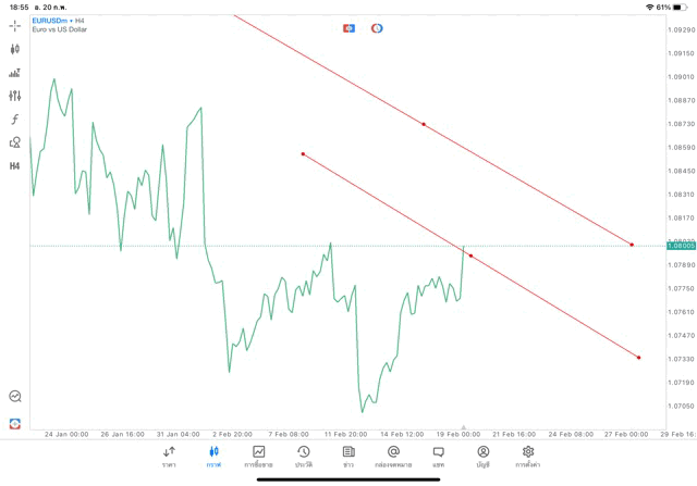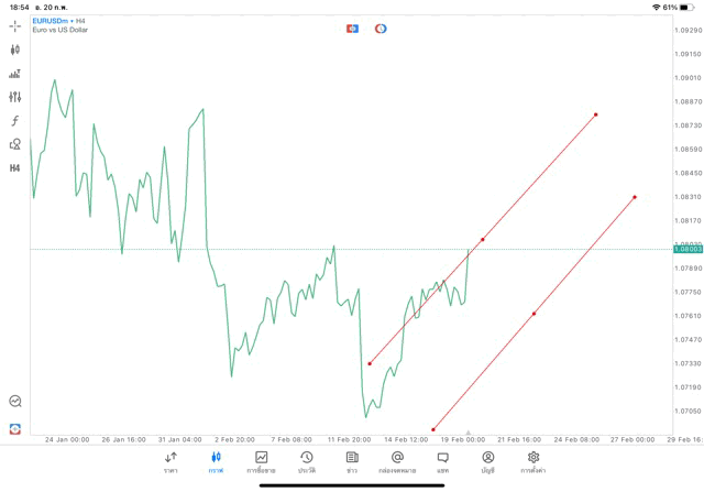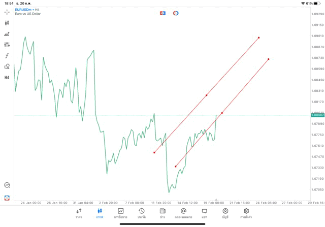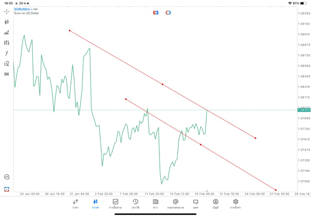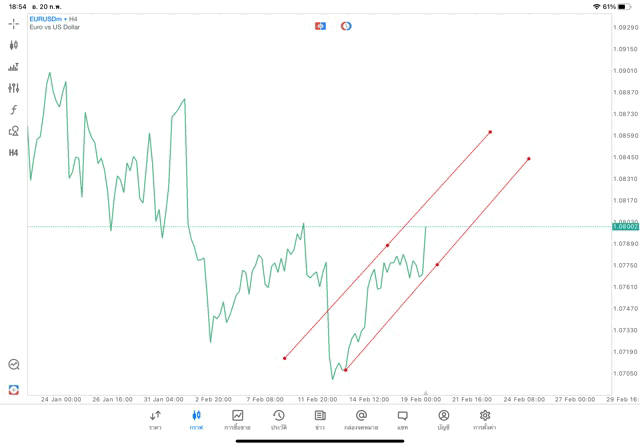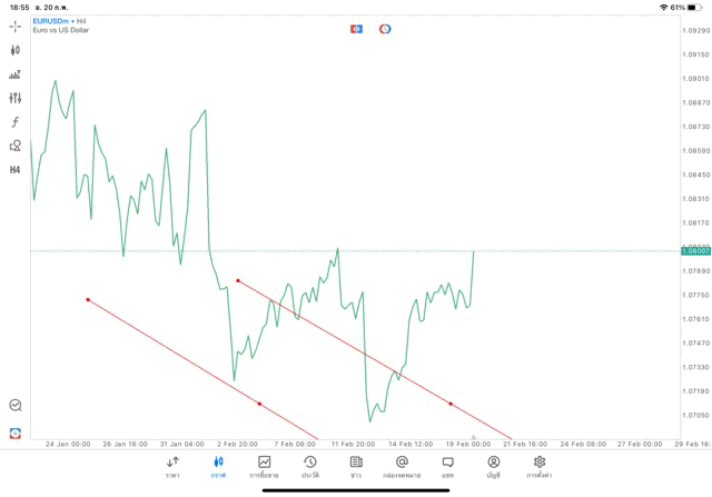 การวาด Trendline H4 Forex EURUSD application Meta trader 5 หรือ mt5 โบรกเกอร์ forex exness