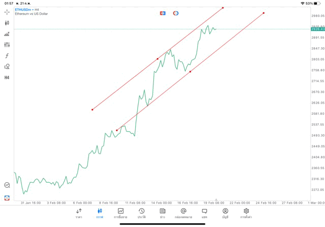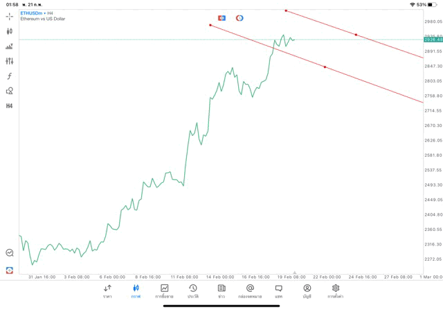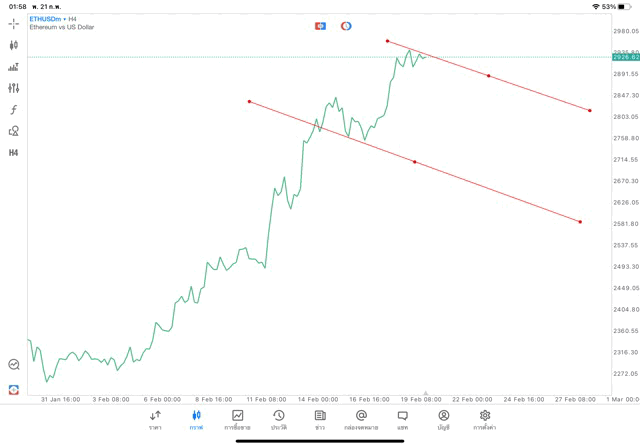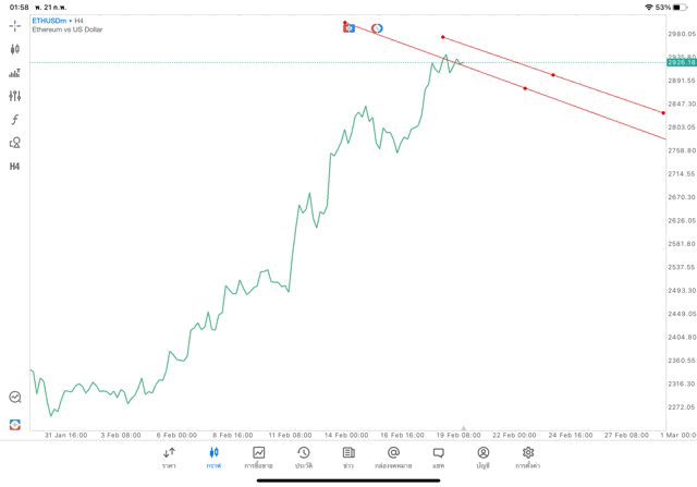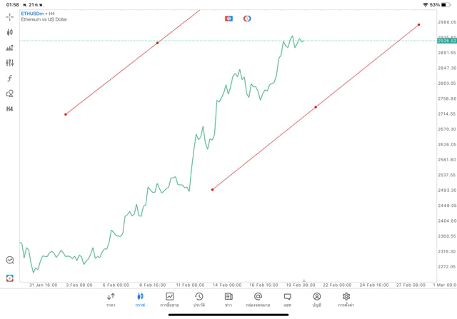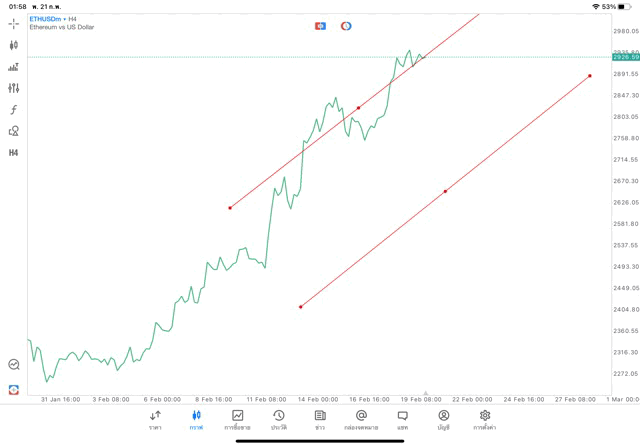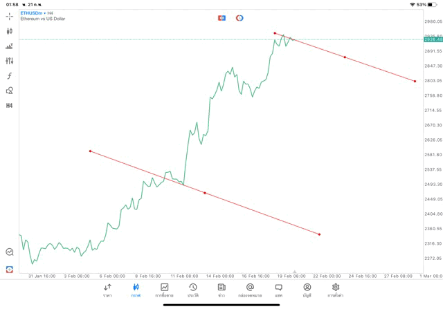 การวาด Trendline H4 Crypto ETHUSD application Meta trader 5 หรือ mt5 โบรกเกอร์ forex exness