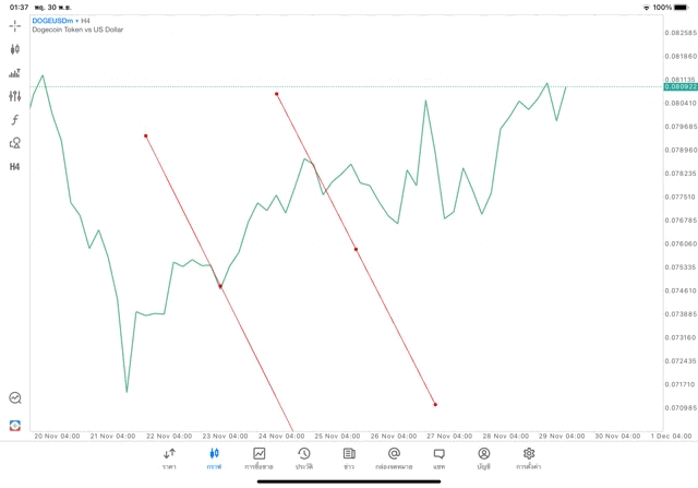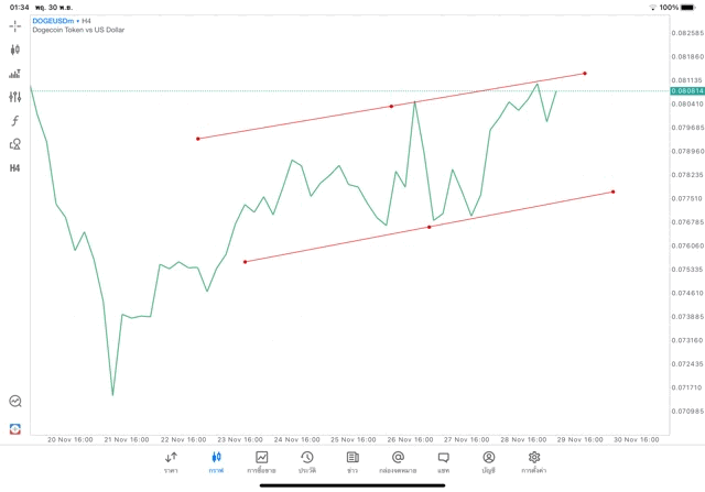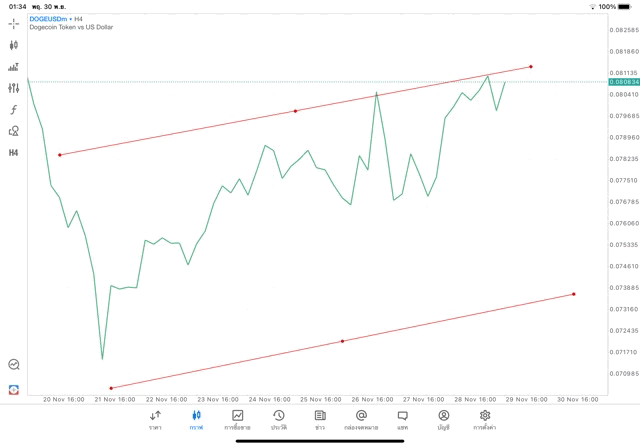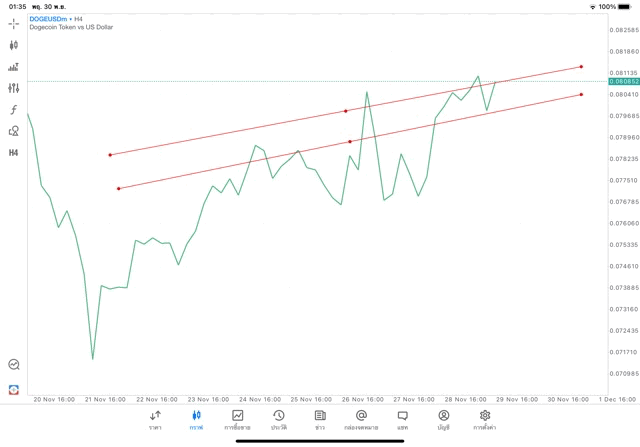 การวาด Tradeline H4 Crypto DOGEUSD application Meta trader 5 หรือ mt5 โบรกเกอร์ forex exness