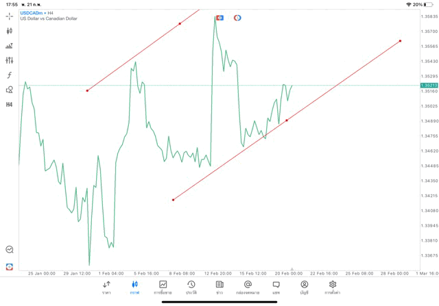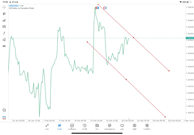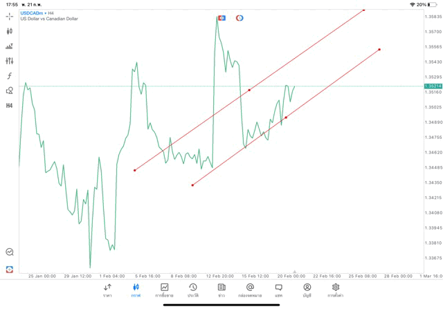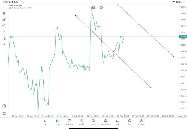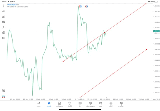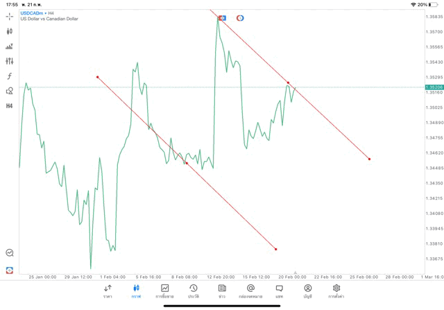 การวาด Trendline H4 Forex USDCAD application Meta trader 5 หรือ mt5