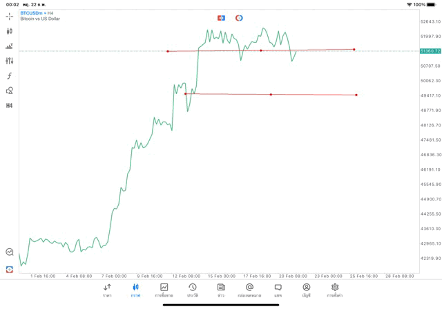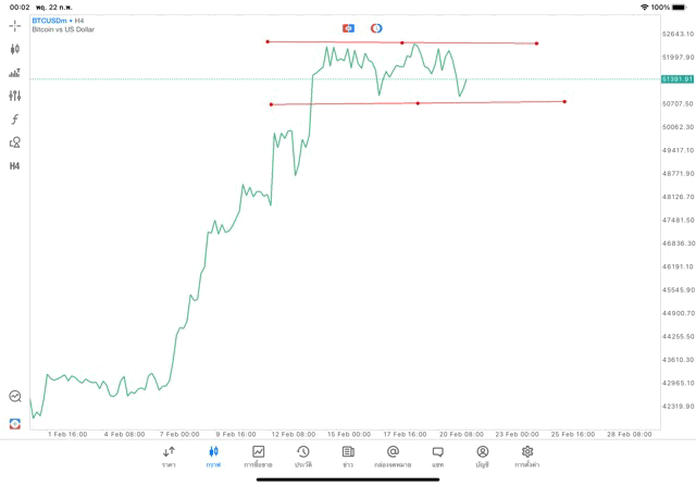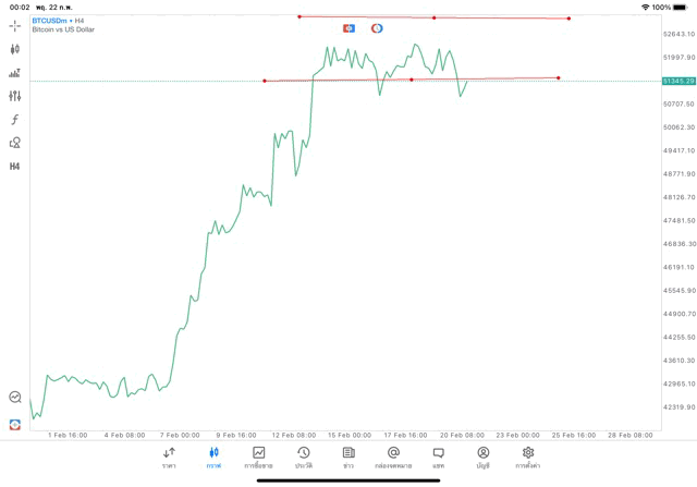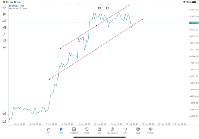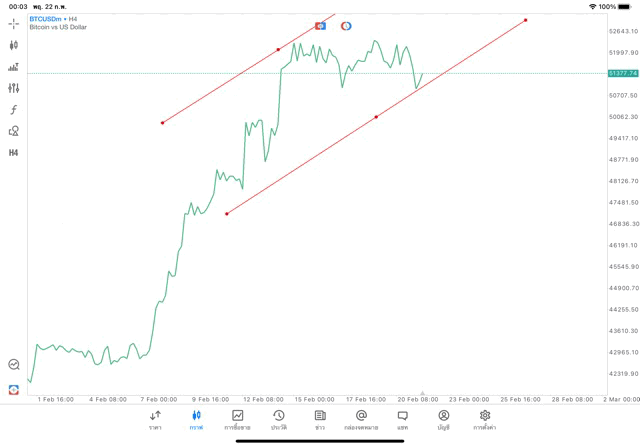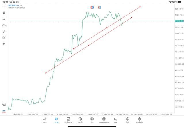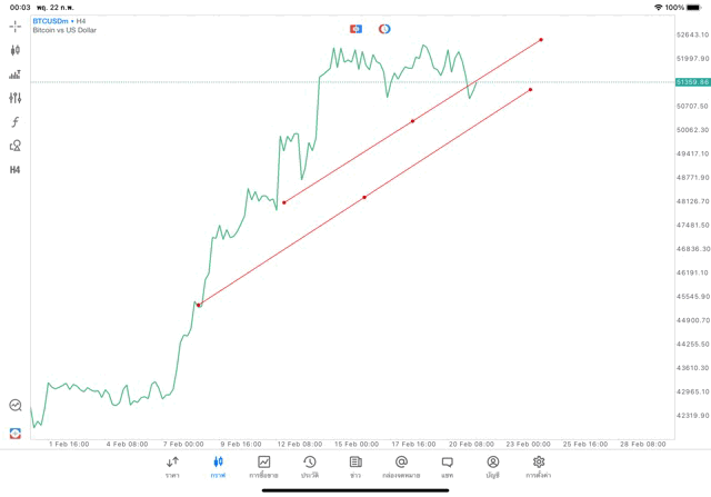 การวาด Trendline H4 Crypto BTCUSD application Meta trader 5 หรือ mt5 โบรกเกอร์ forex exness
