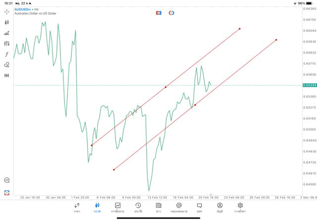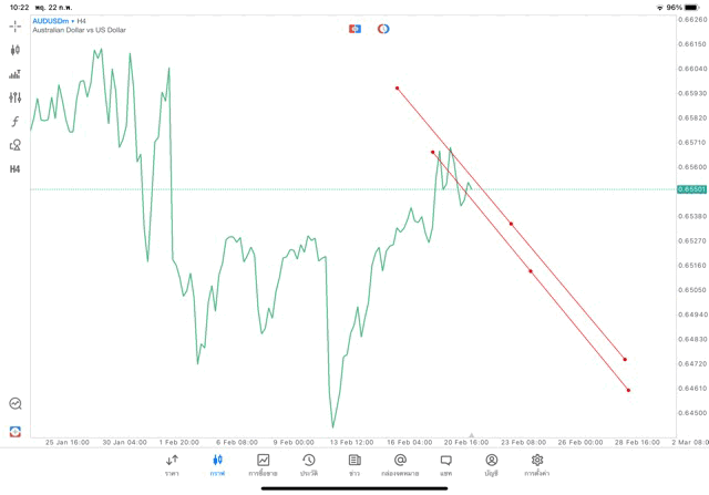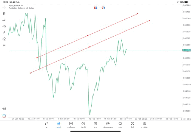 การวาด Trendline H4 Forex AUDUSD application Meta trader 5 หรือ mt5 โบรกเกอร์ Forex exness