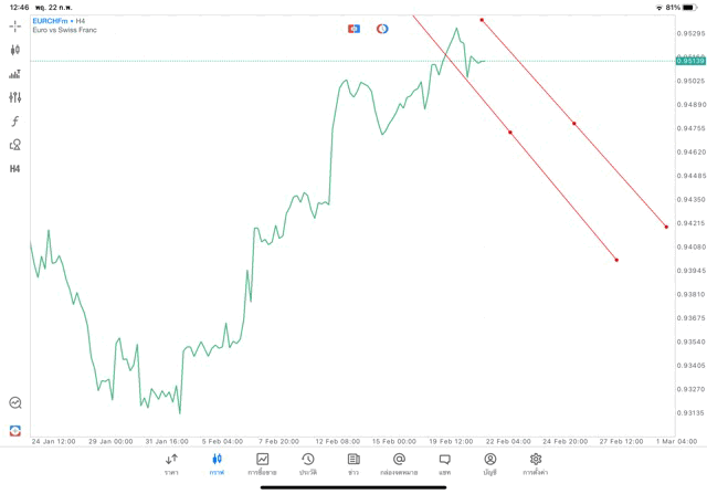 การวาด Trendline H4 Forex EURCHF application Meta trader 5 หรือ mt5 โบรกเกอร์ forex exness