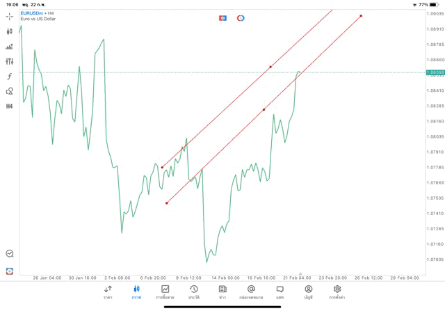 การวาด Trendline H4 Forex EURUSD application Meta trader 5 หรือ mt5 โบรกเกอร์ forex exness