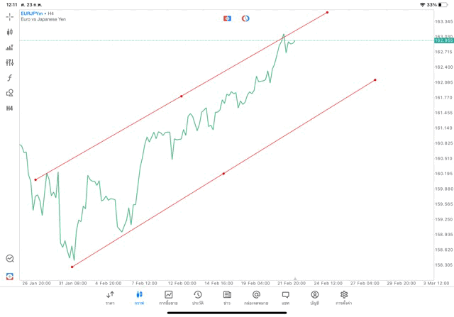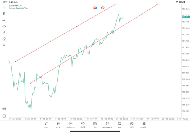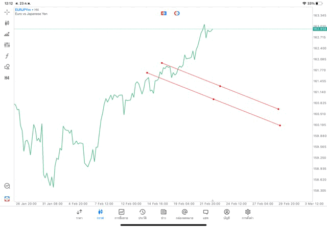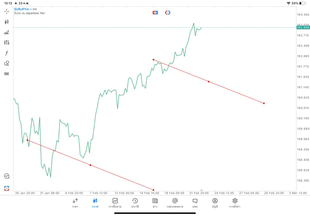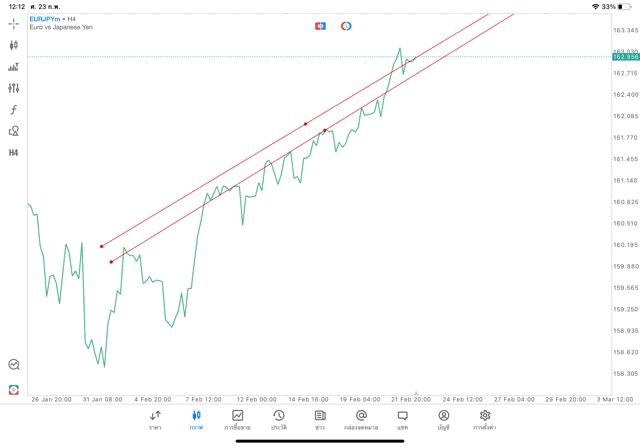 การวาด Trendline H4 Forex EURJPY application Meta trader 5 หรือ mt5 โบรกเกอร์ Forex exness