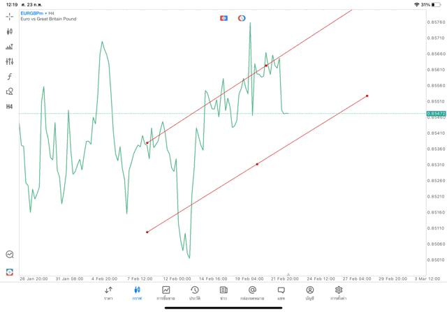 การวาด Trendline H4 Forex EURGBP application Meta trader 5 หรือ mt5 โบรกเกอร์ forex exness