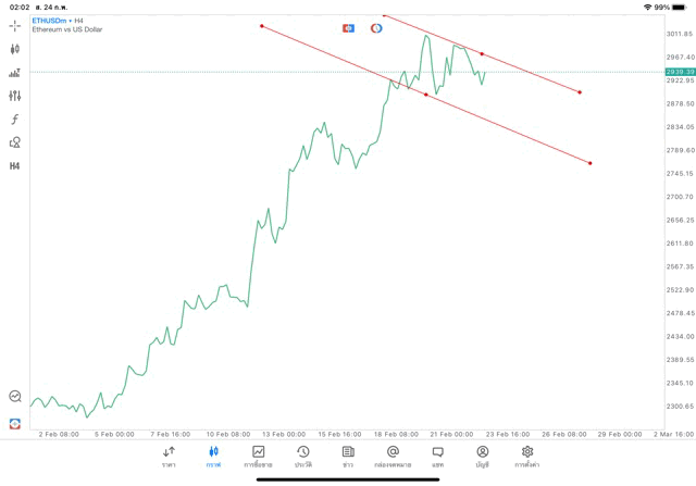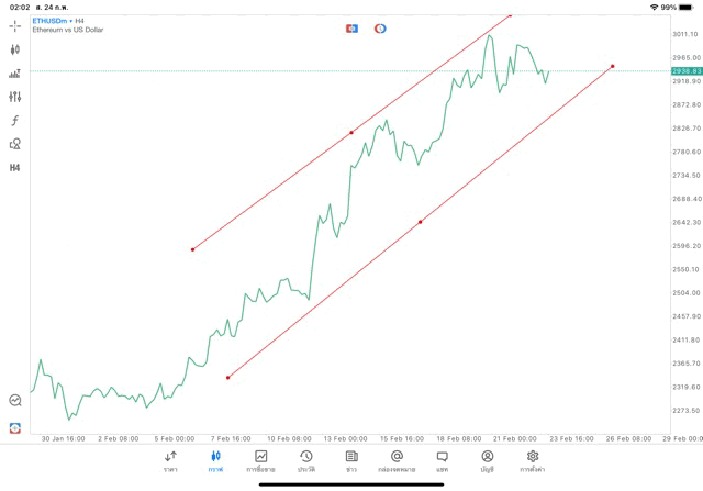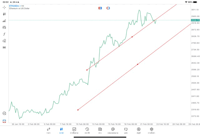 การวาด Trendline H4 Crypto ETHUSD application Meta trader 5 หรือ mt5 โบรกเกอร์ forex exness