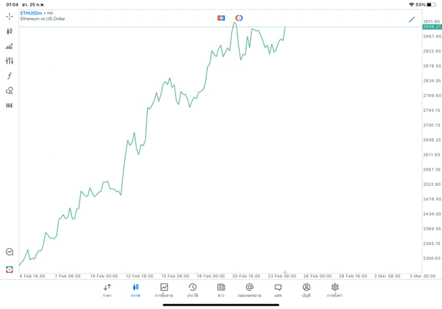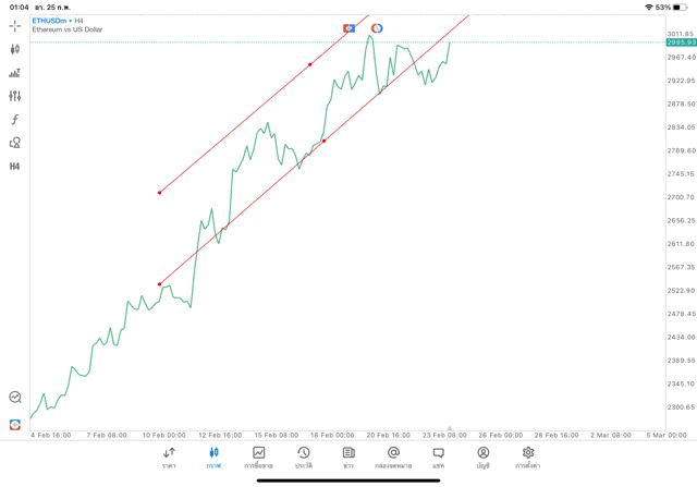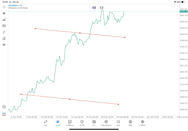 การวาด Trendline H4 Crypto ETHUSD application Meta trader 5 หรือ mt5 โบรกเกอร์ forex exness