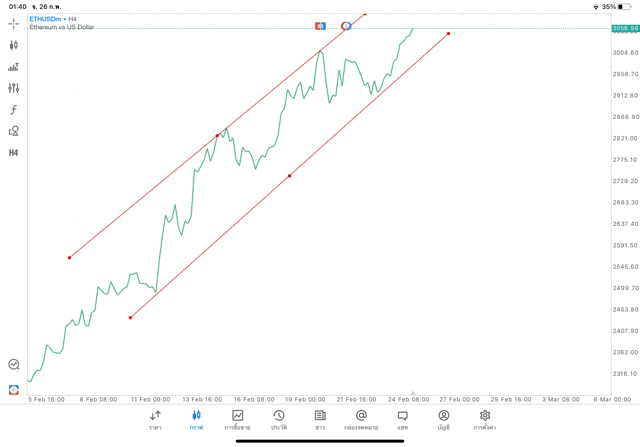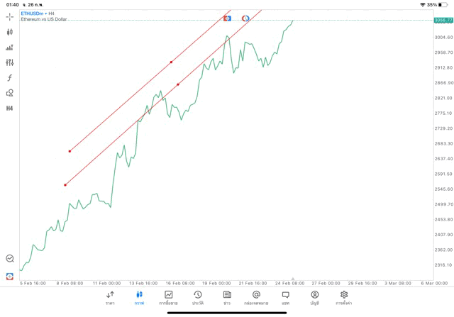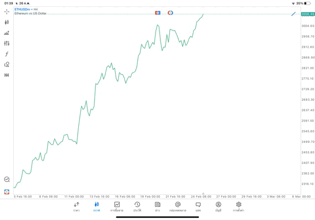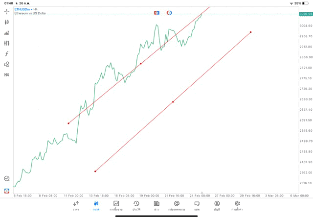 การวาด Trendline H4 Crypto ETHUSD application Meta trader 5 หรือ mt5 โบรกเกอร์ forex exness
