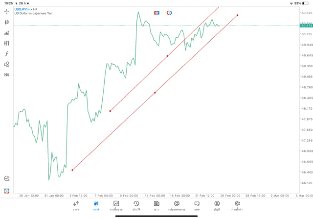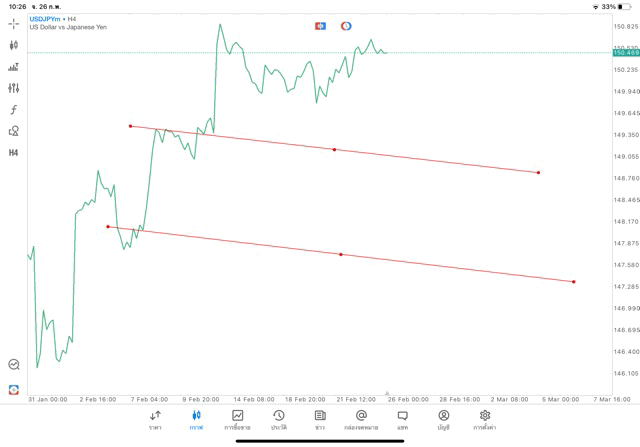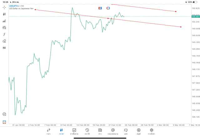 การวาด Trendline H4 Forex USDJPY application Meta trader 5 หรือ mt5 โบรกเกอร์ Forex exness