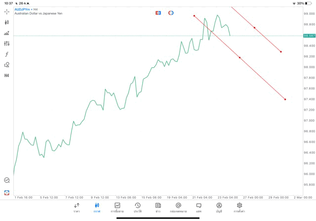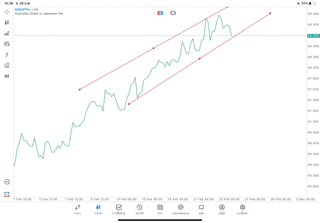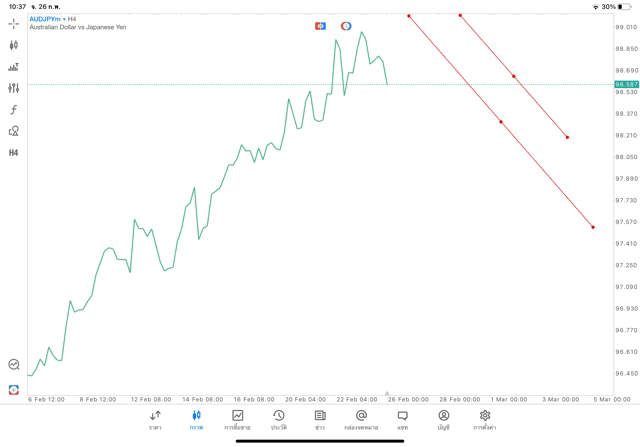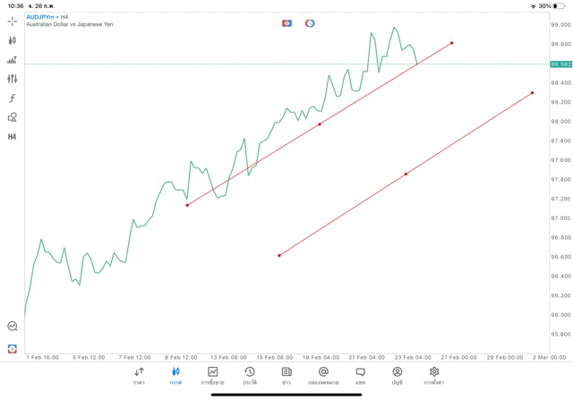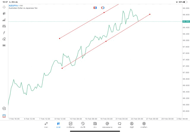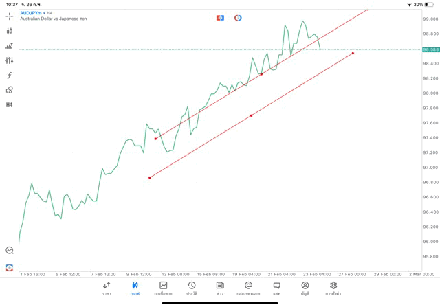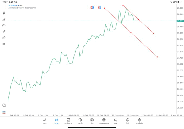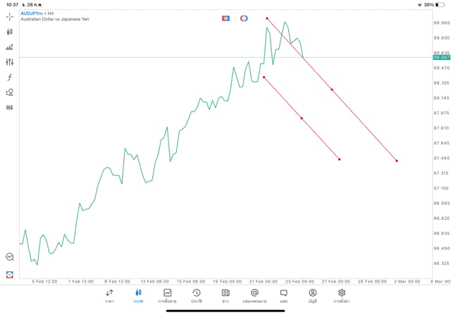 การวาด Trendline H4 Forex AUDJPY application Meta trader 5 หรือ mt5 โบรกเกอร์ Forex exness