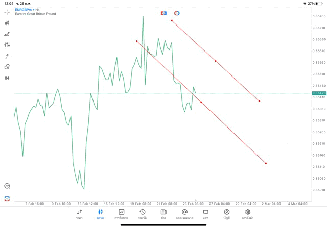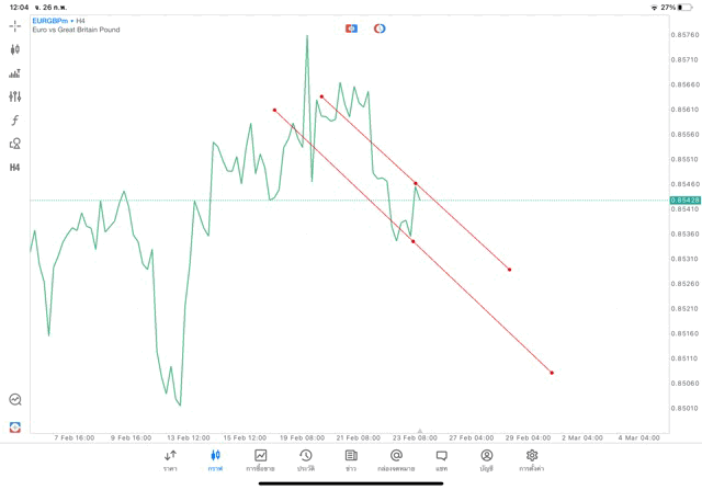 การวาด Trendline H4 Forex EURGBP application Meta trader 5 หรือ mt5 โบรกเกอร์ forex exness