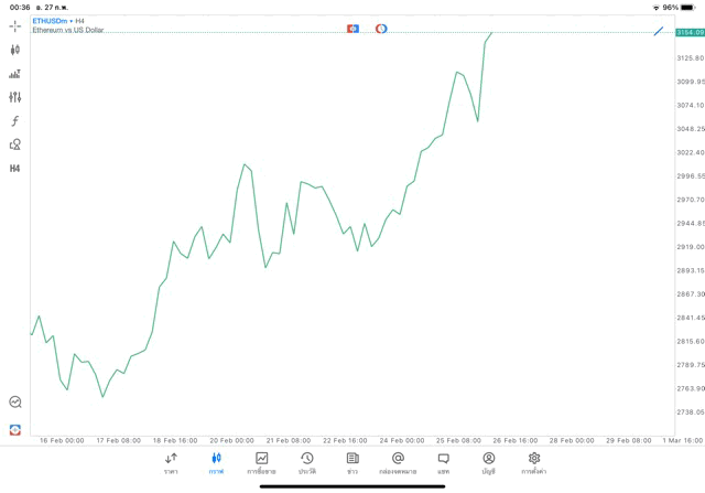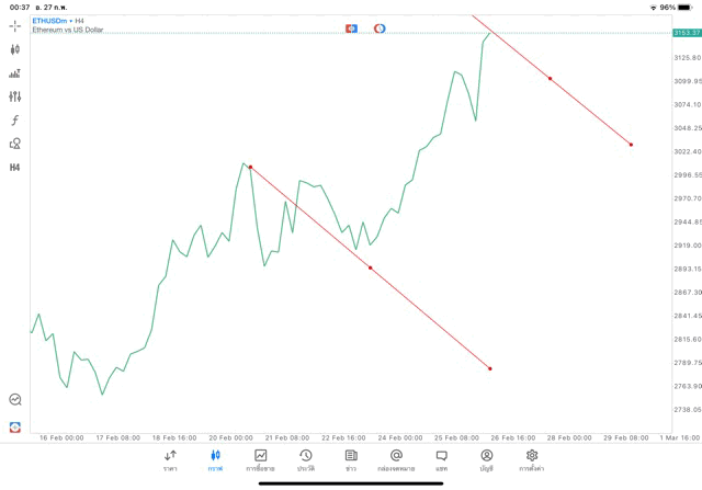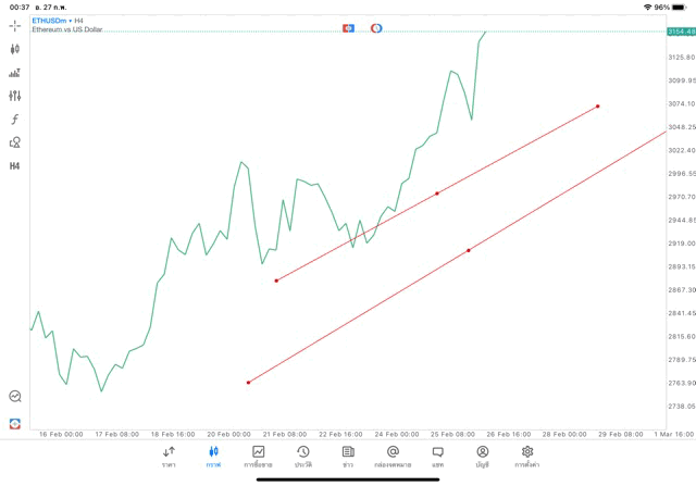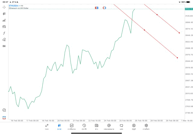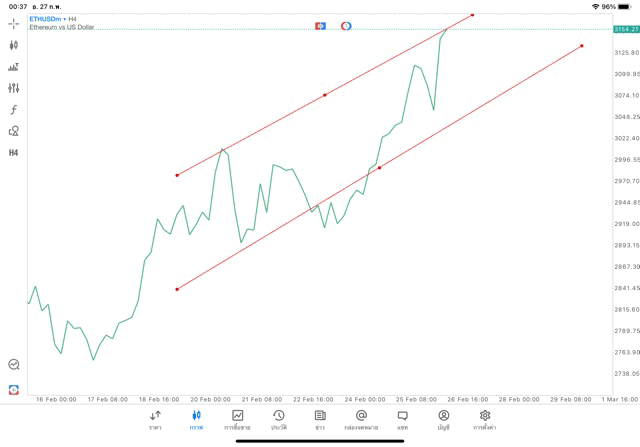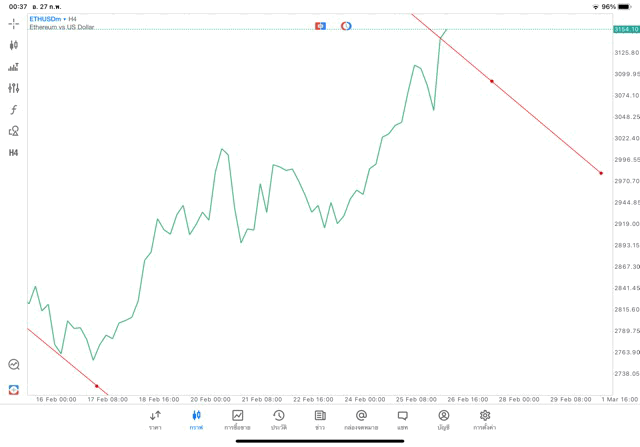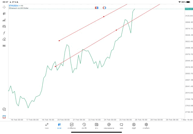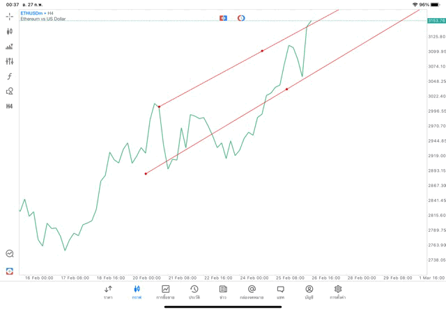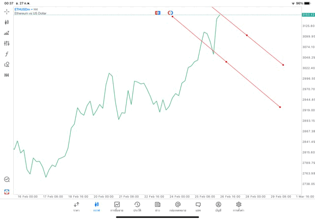 การวาด Trendline H4 Crypto ETHUSD application Meta trader 5 หรือ mt5 โบรกเกอร์ forex exness