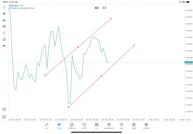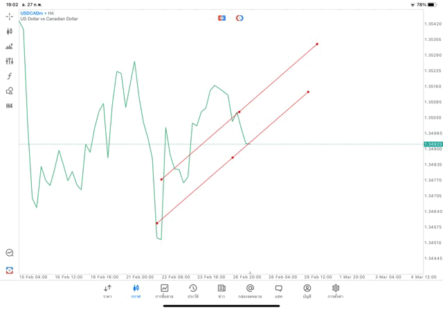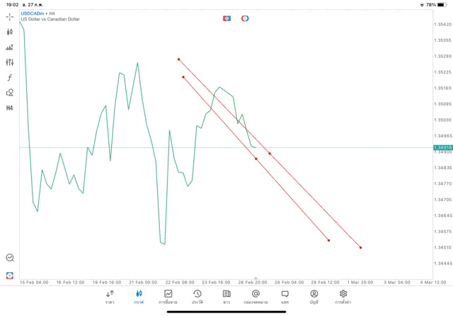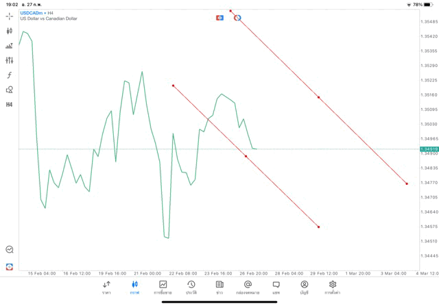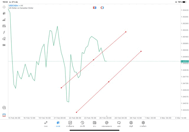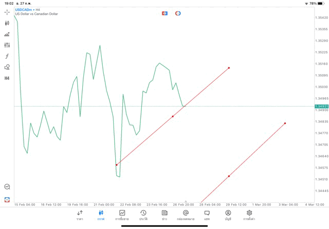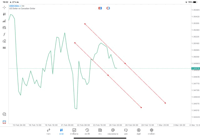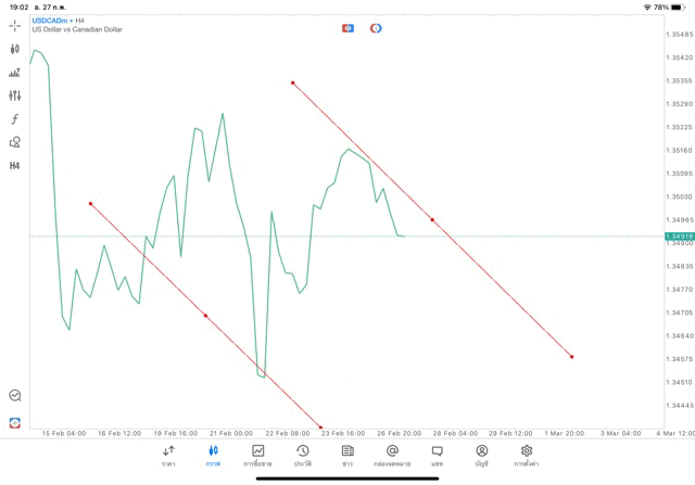 การวาด Trendline H4 Forex USDCAD application Meta trader 5 หรือ mt5