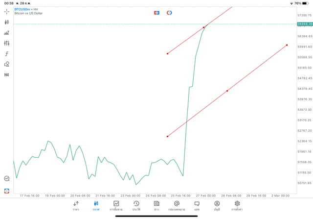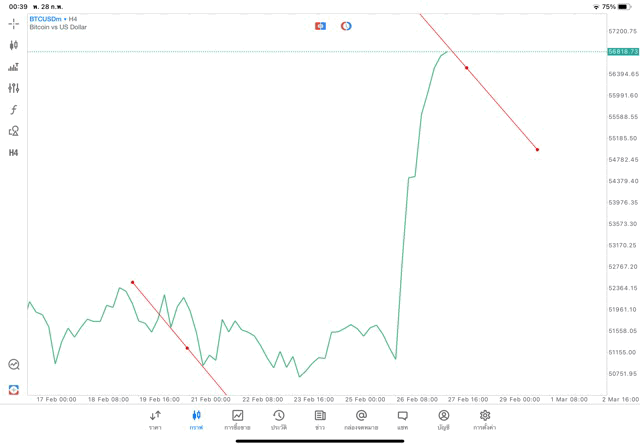การวาด Trendline H4 Crypto BTCUSD application Meta trader 5 หรือ mt5 โบรกเกอร์ forex exness