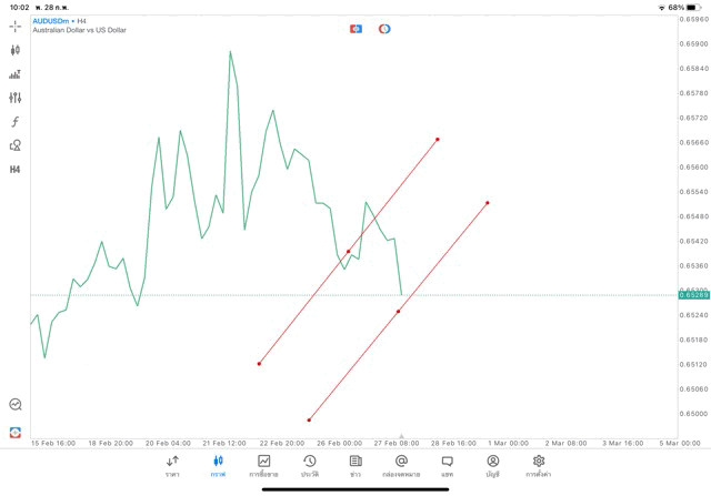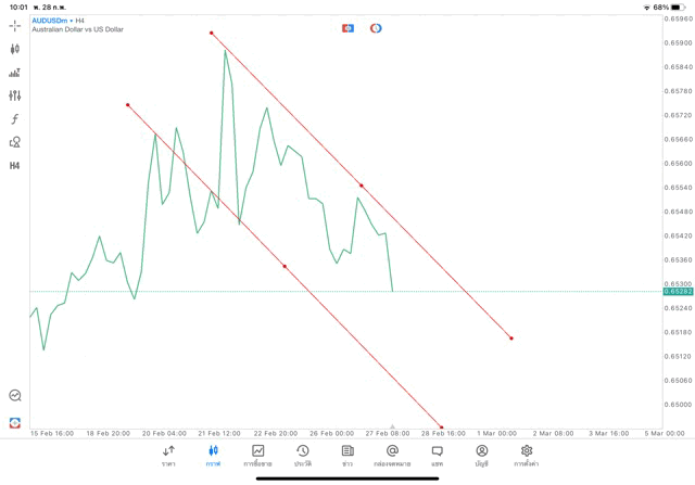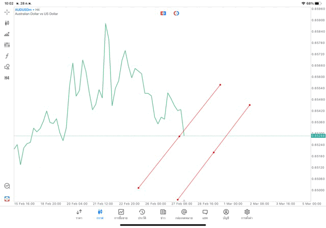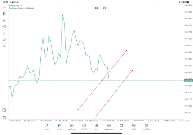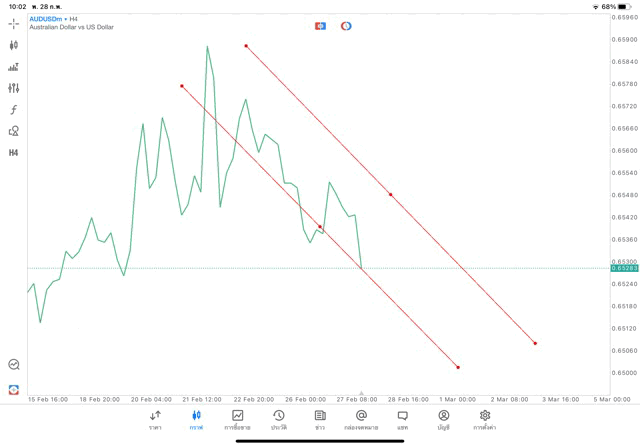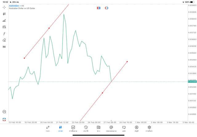การวาด Trendline H4 Forex AUDUSD application Meta trader 5 หรือ mt5 โบรกเกอร์ Forex exness