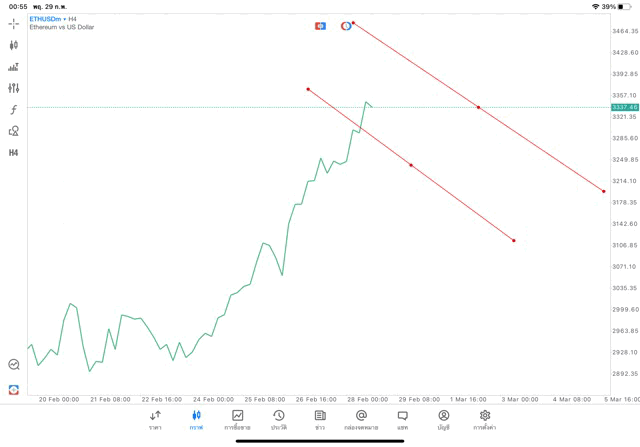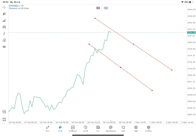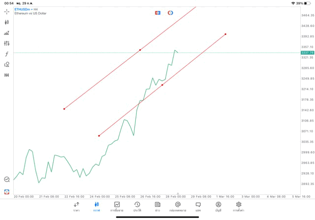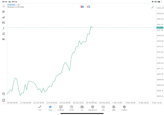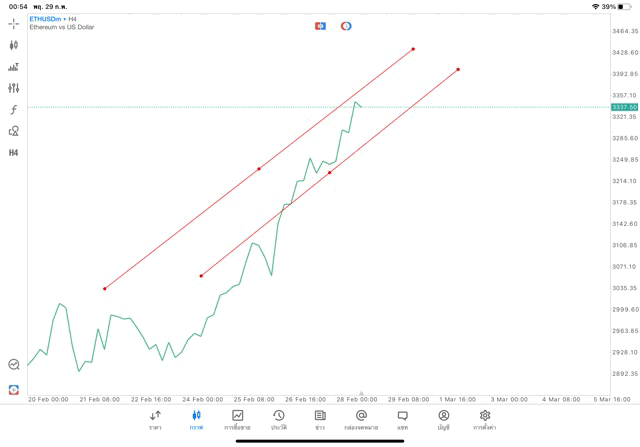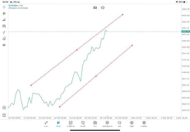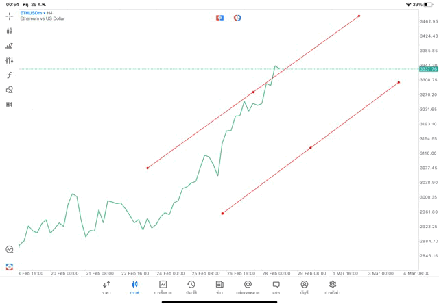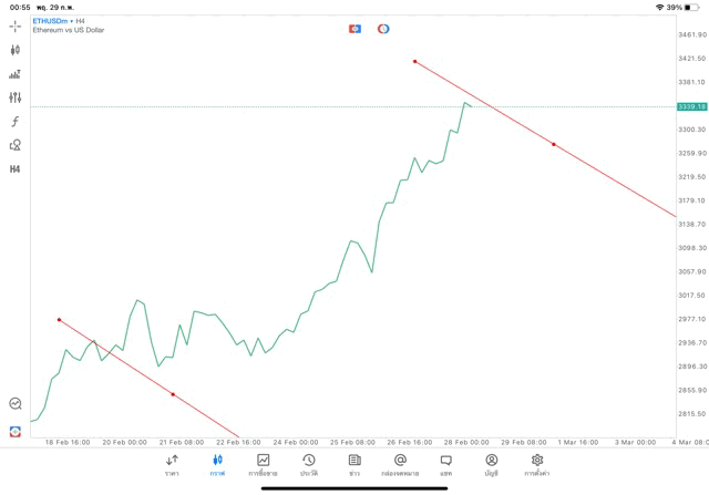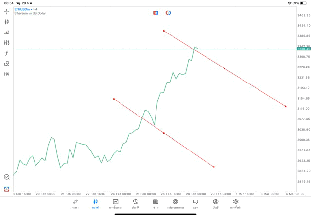 การวาด Trendline H4 Crypto ETHUSD application Meta trader 5 หรือ mt5 โบรกเกอร์ forex exness