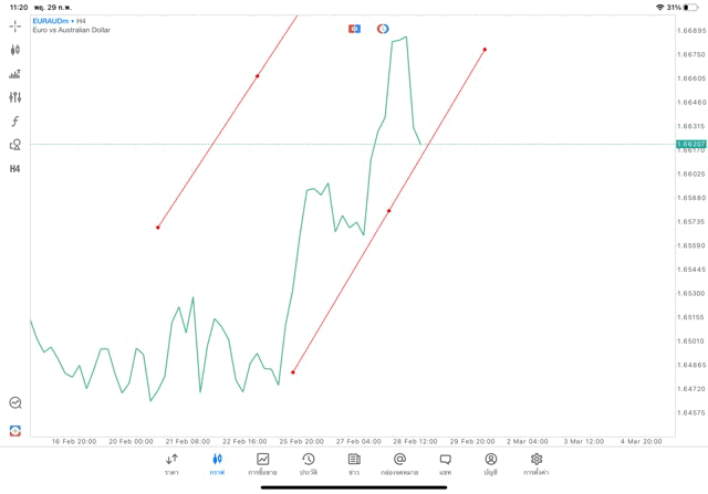 การวาด Trendline H4 Forex EURAUD application Meta trader 5 หรือ mt5 โบรกเกอร์ forex exness