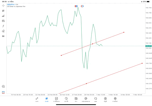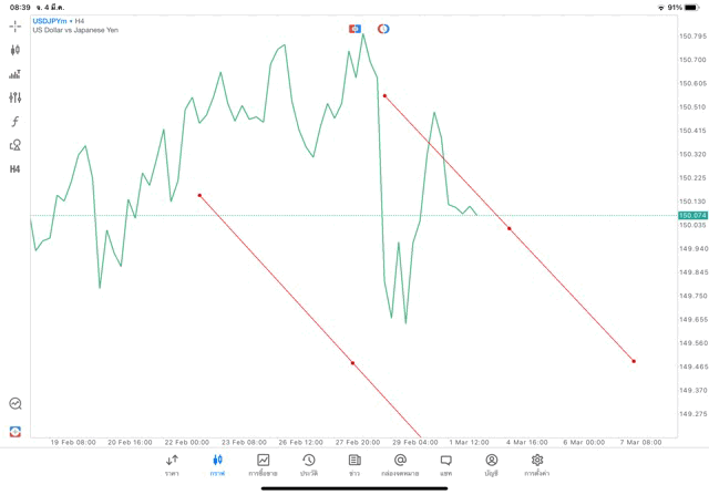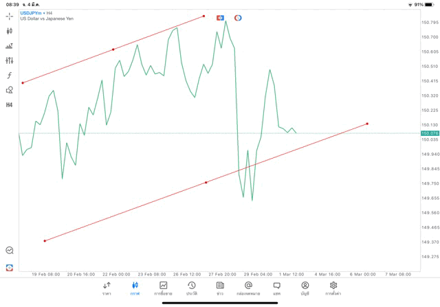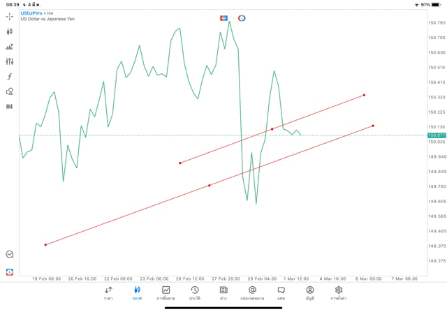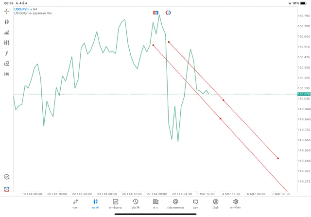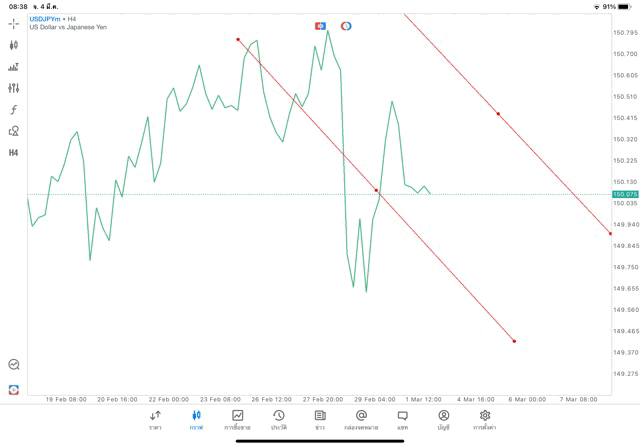 การวาด Trendline H4 Forex USDJPY application Meta trader 5 หรือ mt5 โบรกเกอร์ Forex exness