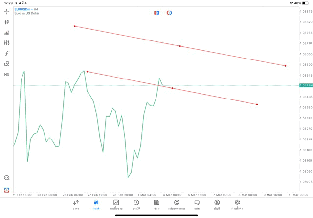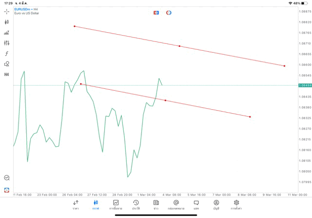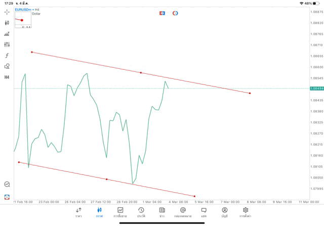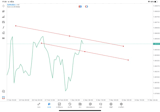 การวาด Trendline H4 Forex EURUSD application Meta trader 5 หรือ mt5 โบรกเกอร์ forex exness