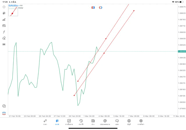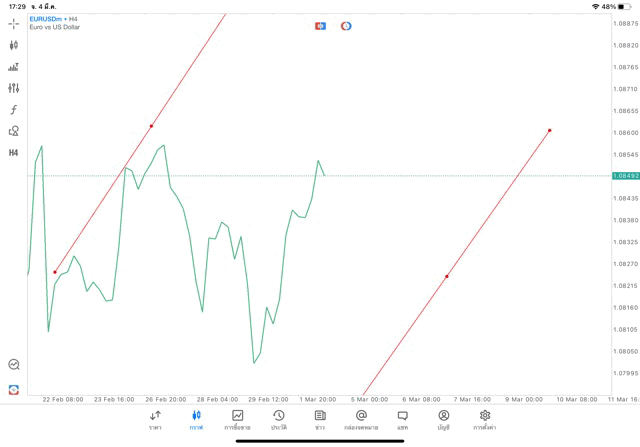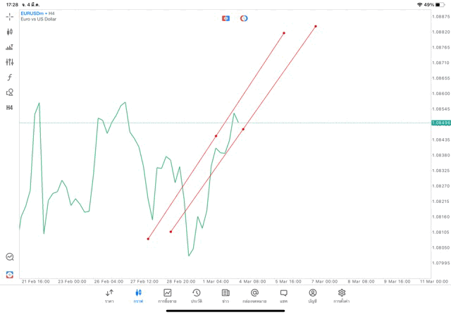 วิธีเปลี่ยน Timeframe และ เพิ่มเส้น Trendline แอพเล่นหุ้น mt5 – คลิ๊ก –