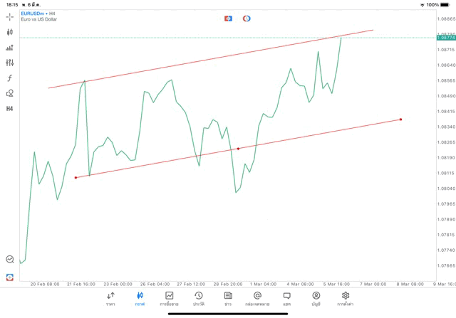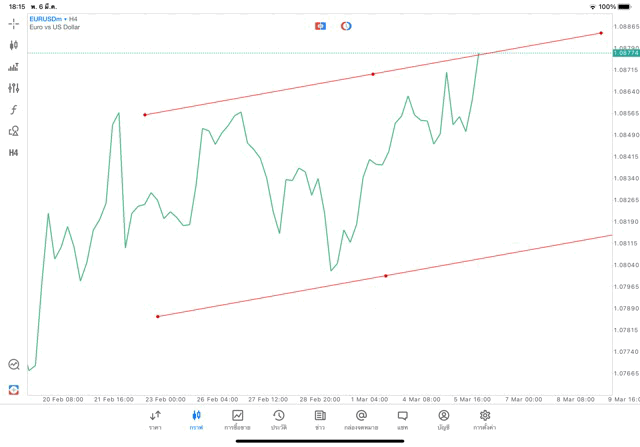 การวาด Trendline H4 Forex EURUSD application Meta trader 5 หรือ mt5 โบรกเกอร์ forex exness