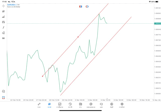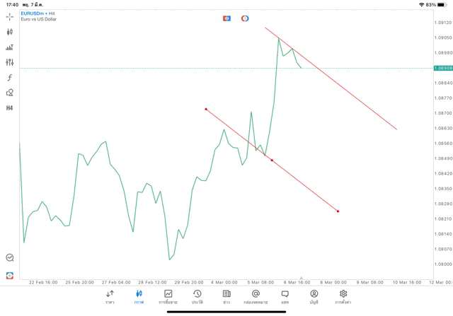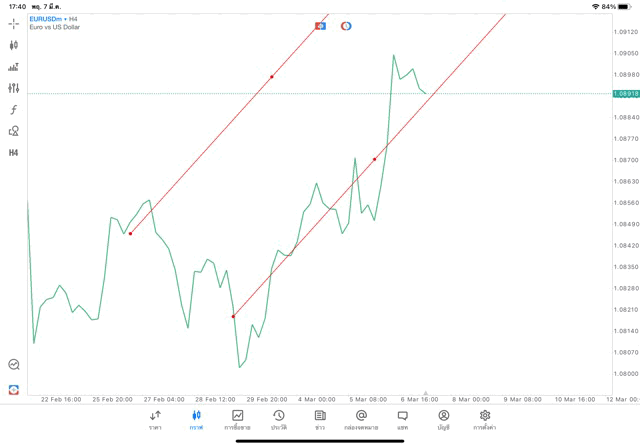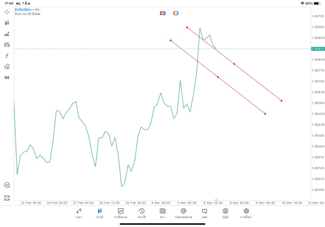 การวาด Trendline H4 Forex EURUSD application Meta trader 5 หรือ mt5 โบรกเกอร์ forex exness
