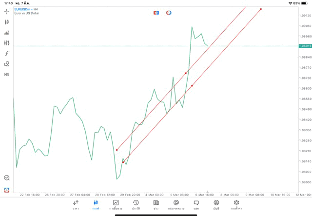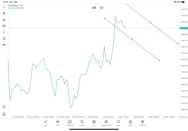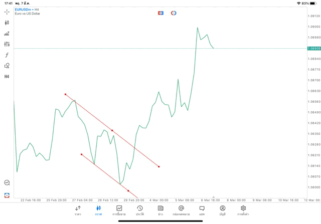 วิธีเปลี่ยน Timeframe และ เพิ่มเส้น Trendline แอพเล่นหุ้น mt5 – คลิ๊ก –