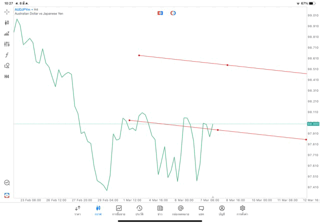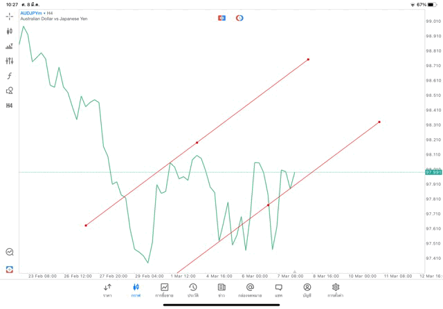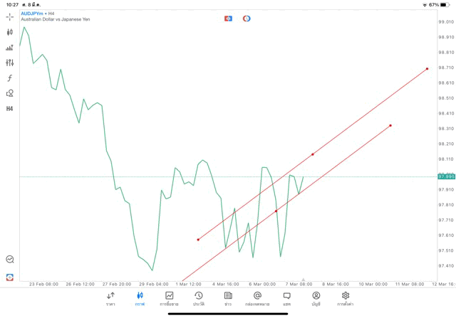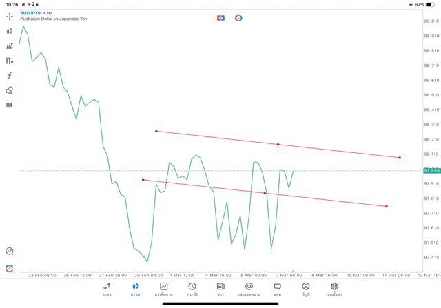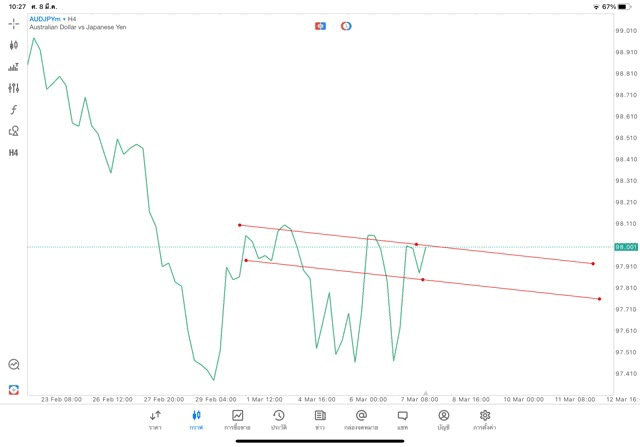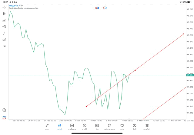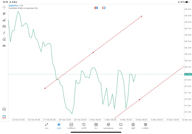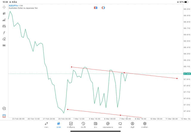 การวาด Trendline H4 Forex AUDJPY application Meta trader 5 หรือ mt5 โบรกเกอร์ Forex exness