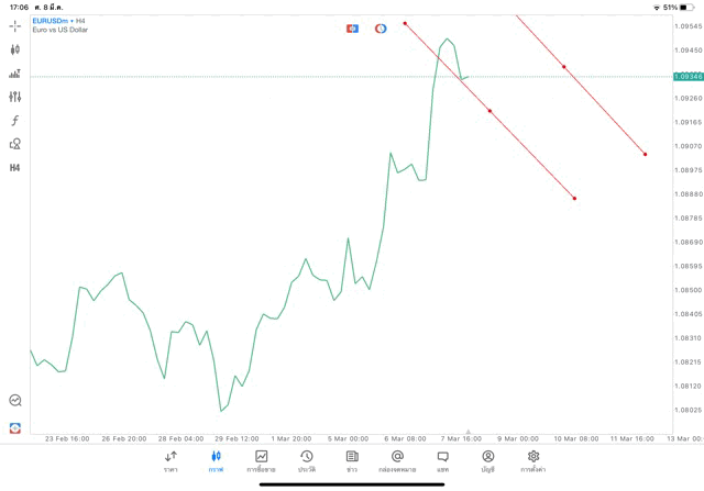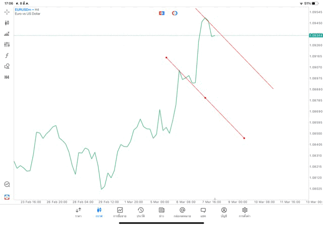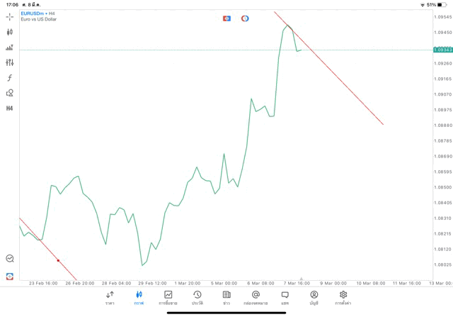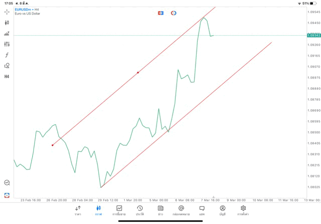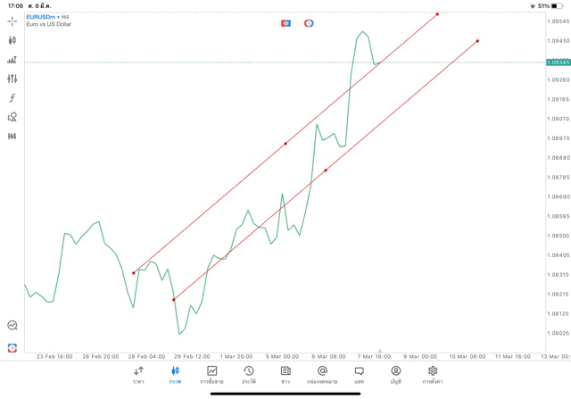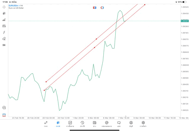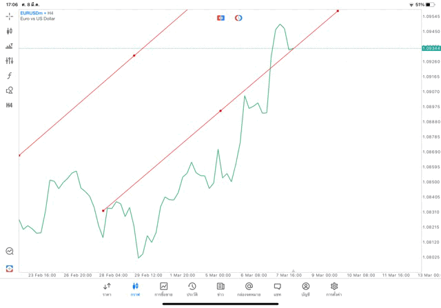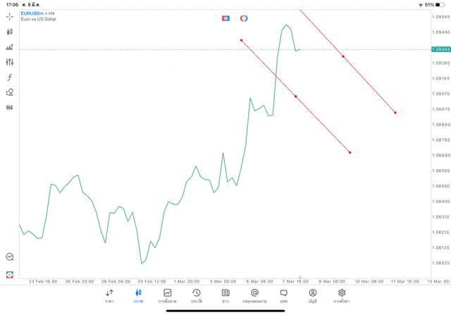 การวาด Trendline H4 Forex EURUSD application Meta trader 5 หรือ mt5 โบรกเกอร์ forex exness